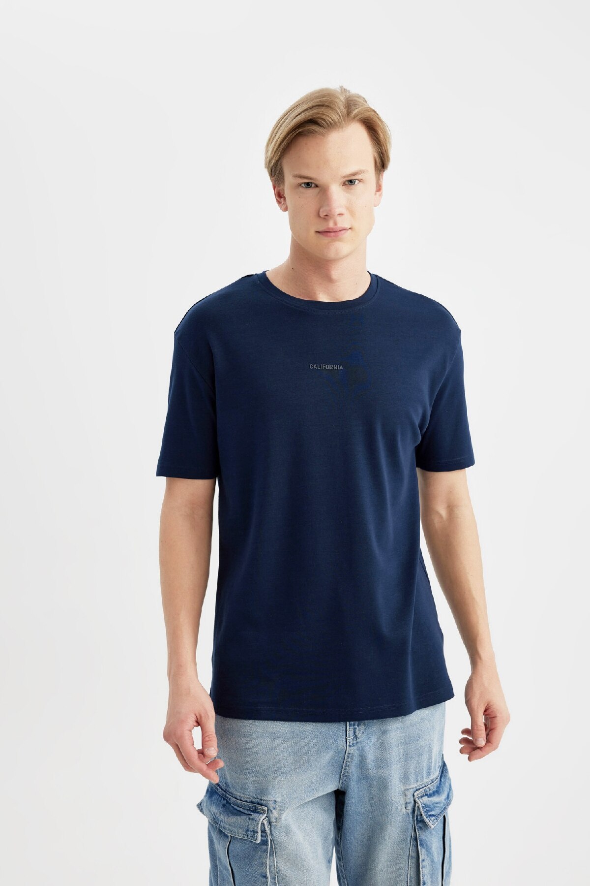 تیشرت دفاکتو آبی سرمه ای بند دار پارچه | تی شرت شیک و راحت Regular Fit Crew Printed T-shirt کاندیدای مورد علاقه کمد لباس شما است.