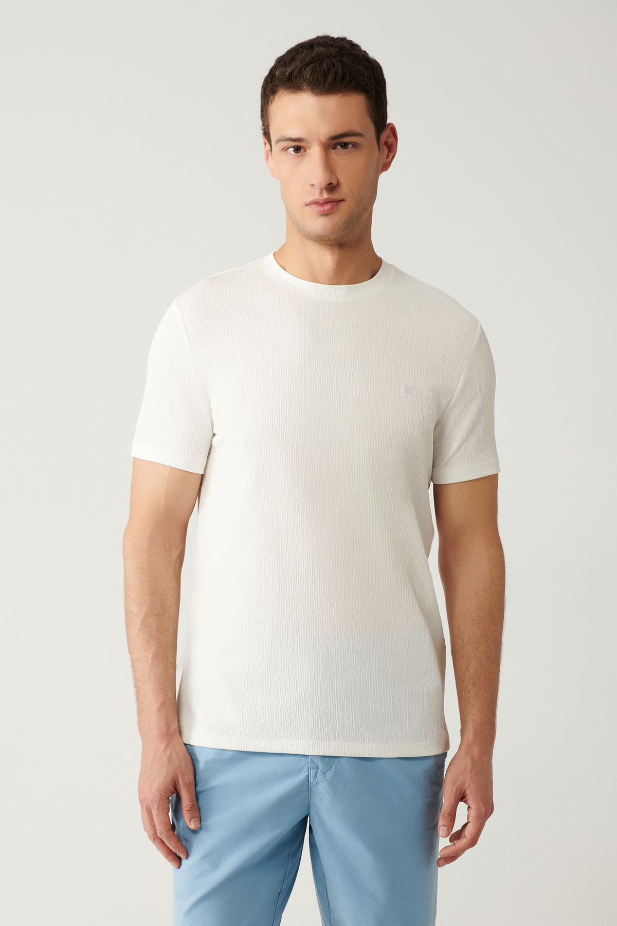 تی شرت مردانه یقه گرد سفید طرح ژاکارد سایز معمولی A41Y1322
