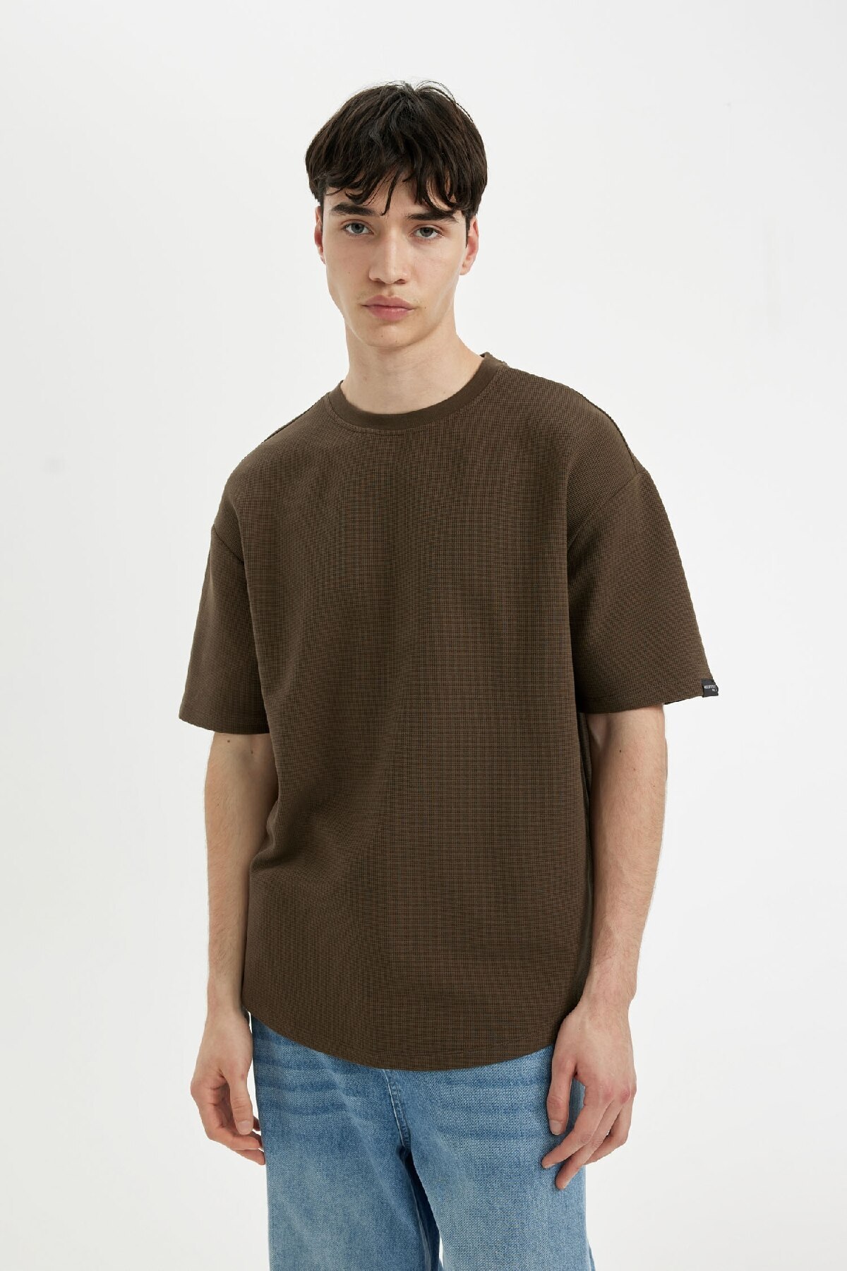 تیشرت دفاکتو قهوه ای آستین استاندارد پنبه ای | تی شرت یقه ای Comfort Fit با برش راحت و طراحی شیک خود بخشی جدایی ناپذیر از کمد لباس شما خواهد بود.