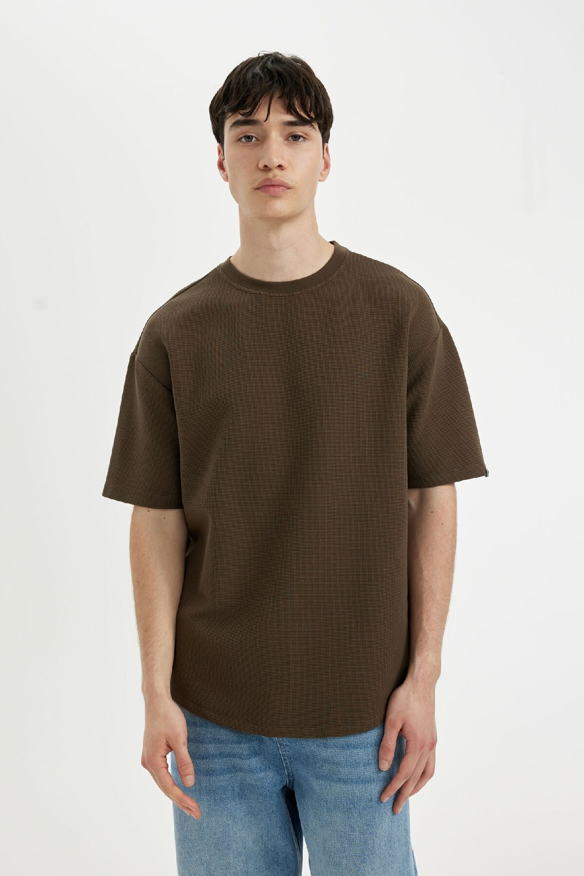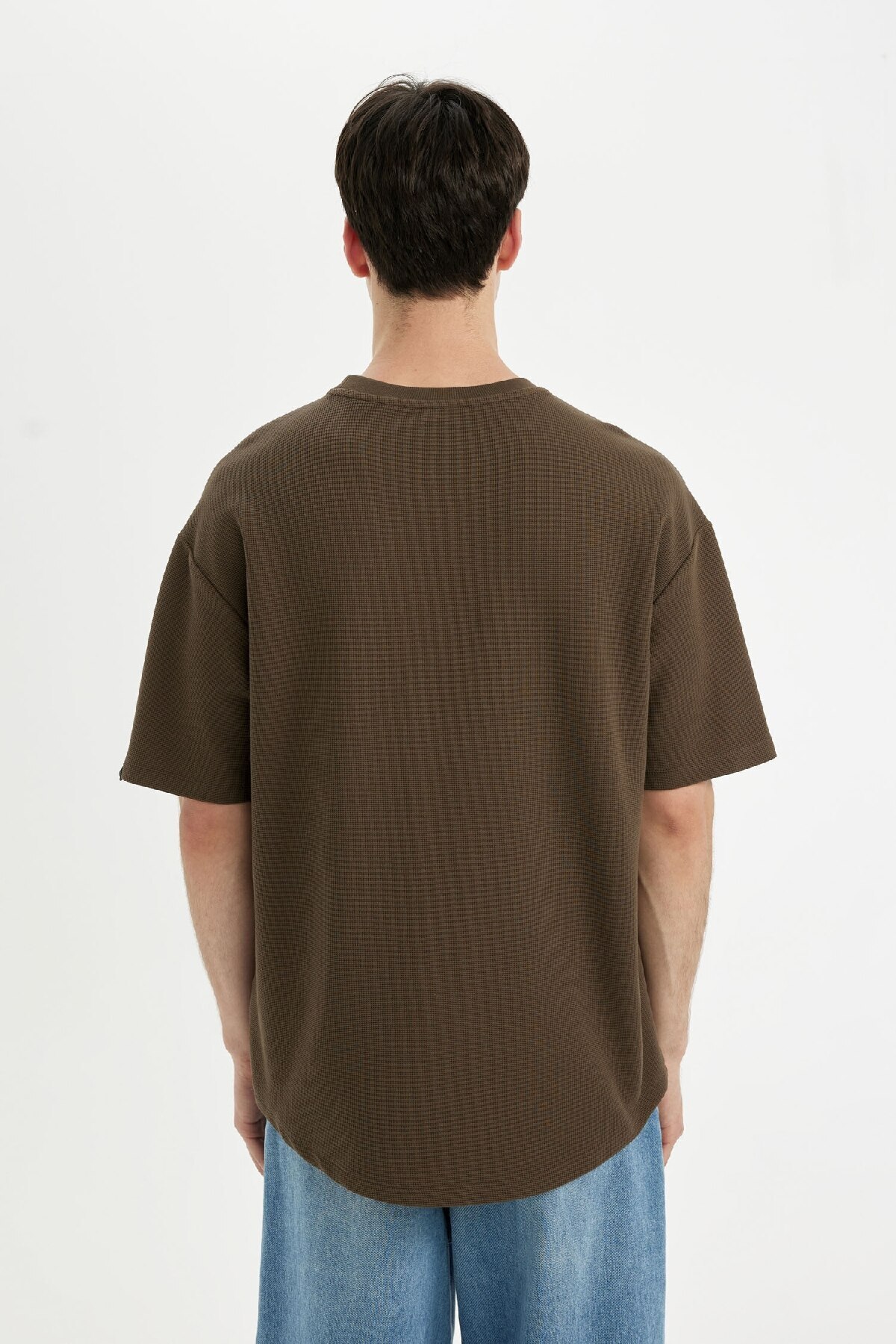 تی شرت یقه کوتاه باکسی فیت باکسی Fit یقه کوتاه وفل ساده ساده B4443ax24sp