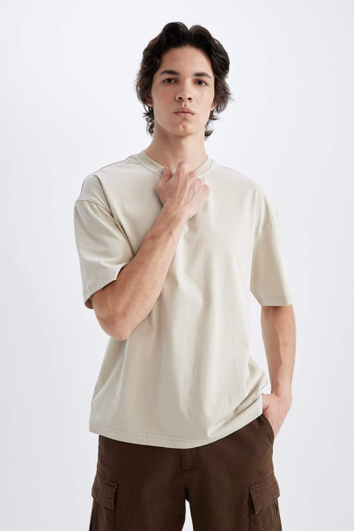 خانه مردانه پوشاک تیشرت تیشرت مردانه بژ دفکتو | D5071AX24HS Defacto