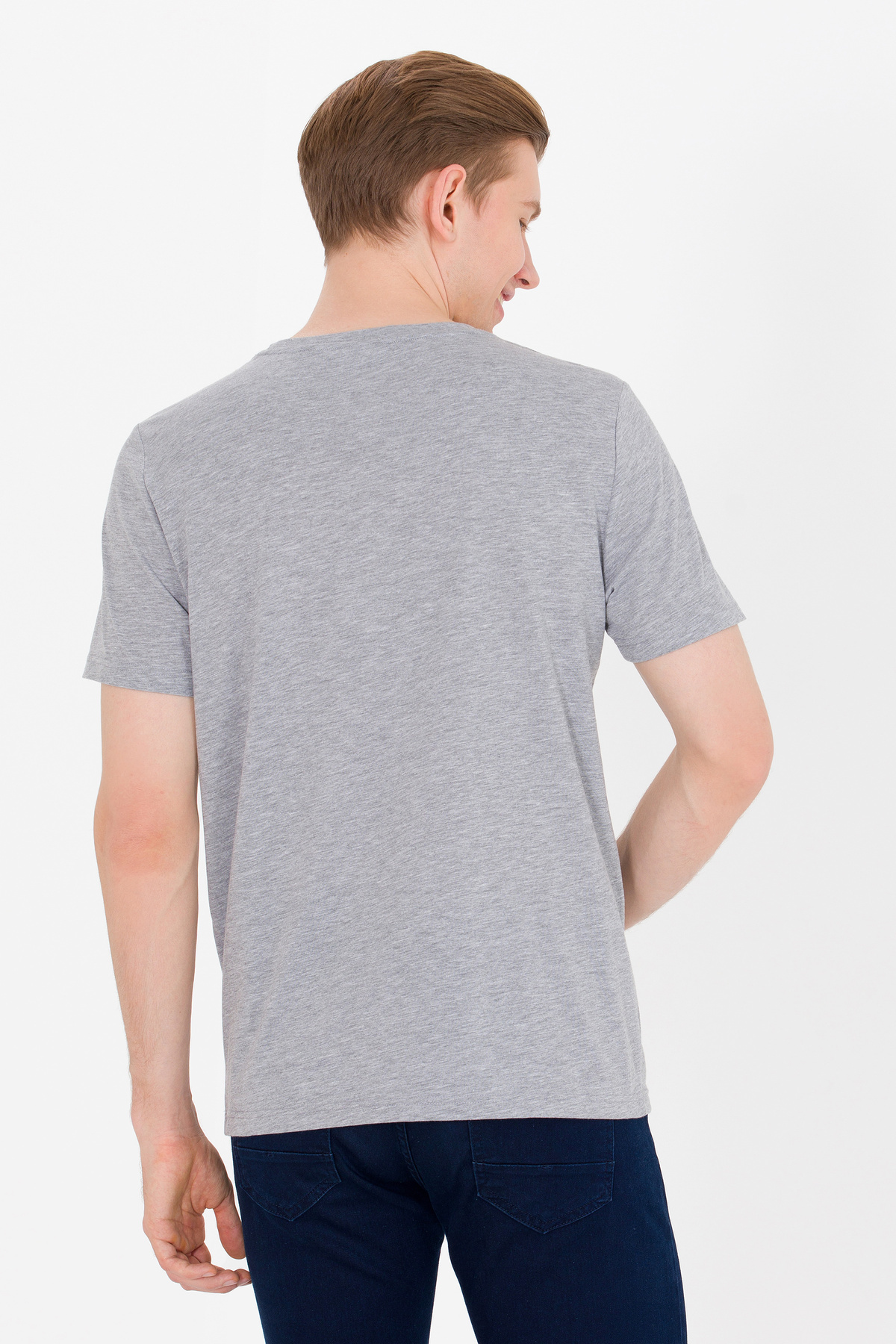 تیشرت مردانه یقه گرد طرح ملانژ خاکستری کد ۵۰۲۶۴۹۱۸-VR۱۰۹