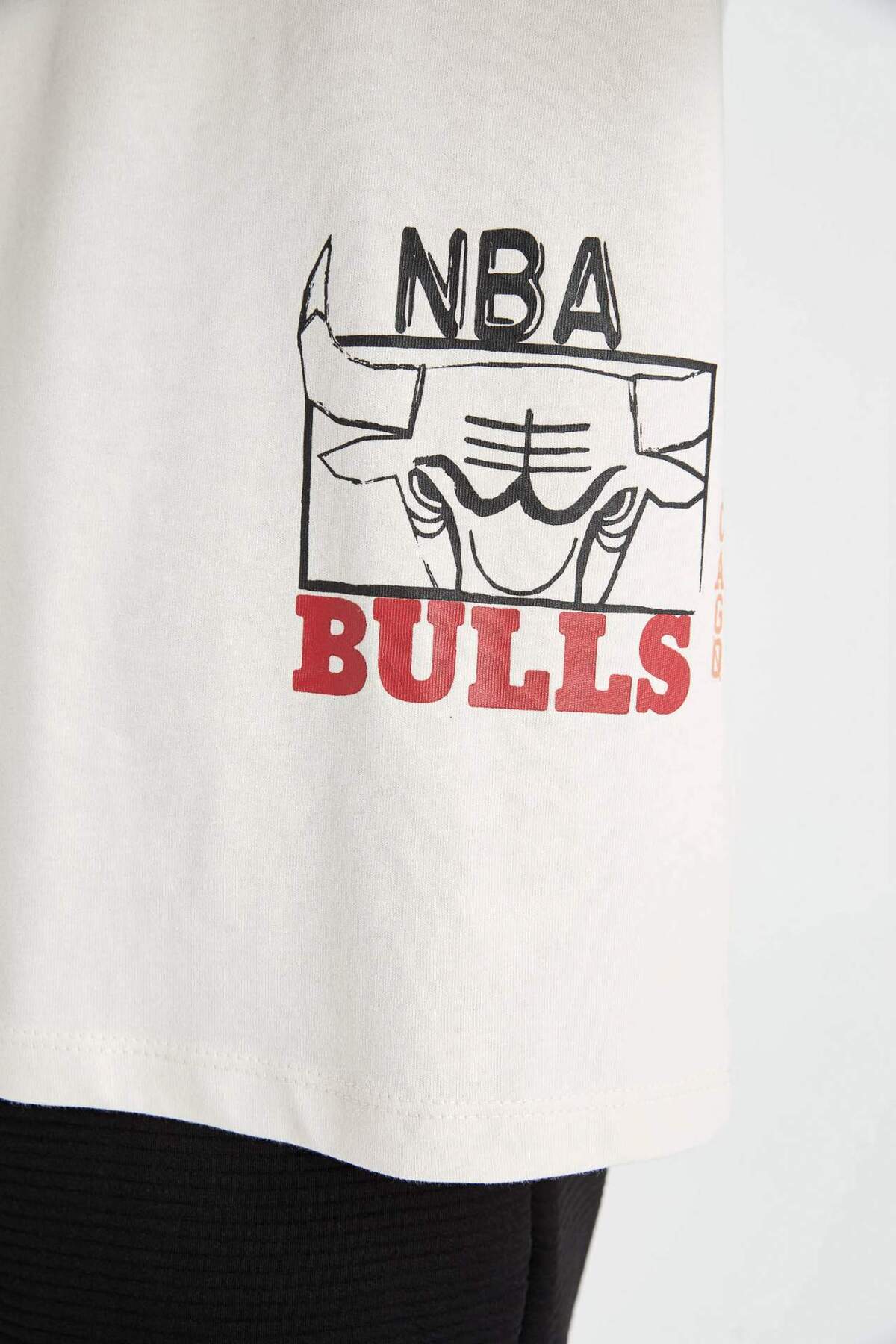 تیشرت آستین کوتاه نخی یقه گرد گشاد سایز بزرگ DeFactoFit NBA شیکاگو بولز C9272AX24A