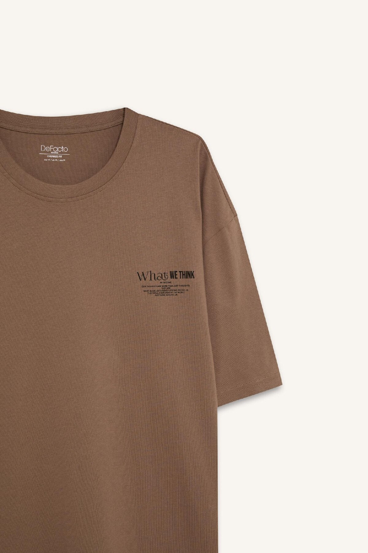 تیشرت دفاکتو قهوه ای آستین استاندارد | تی شرت آستین کوتاه یقه ای واید سایز بزرگ با برش راحت و چاپ شیک پشت خود جلب توجه می کند.