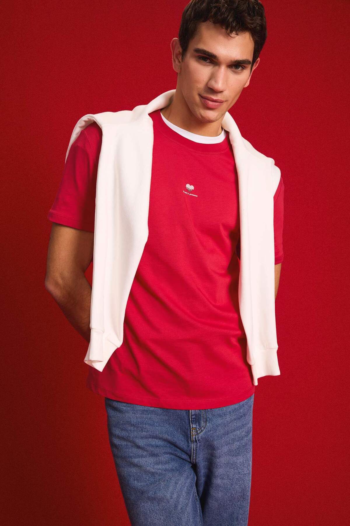 تیشرت آستین کوتاه قرمز طرح قلب، ۱۰۰٪ پنبه، یقه گرد، سایز معمولی، D5156AX25SP
