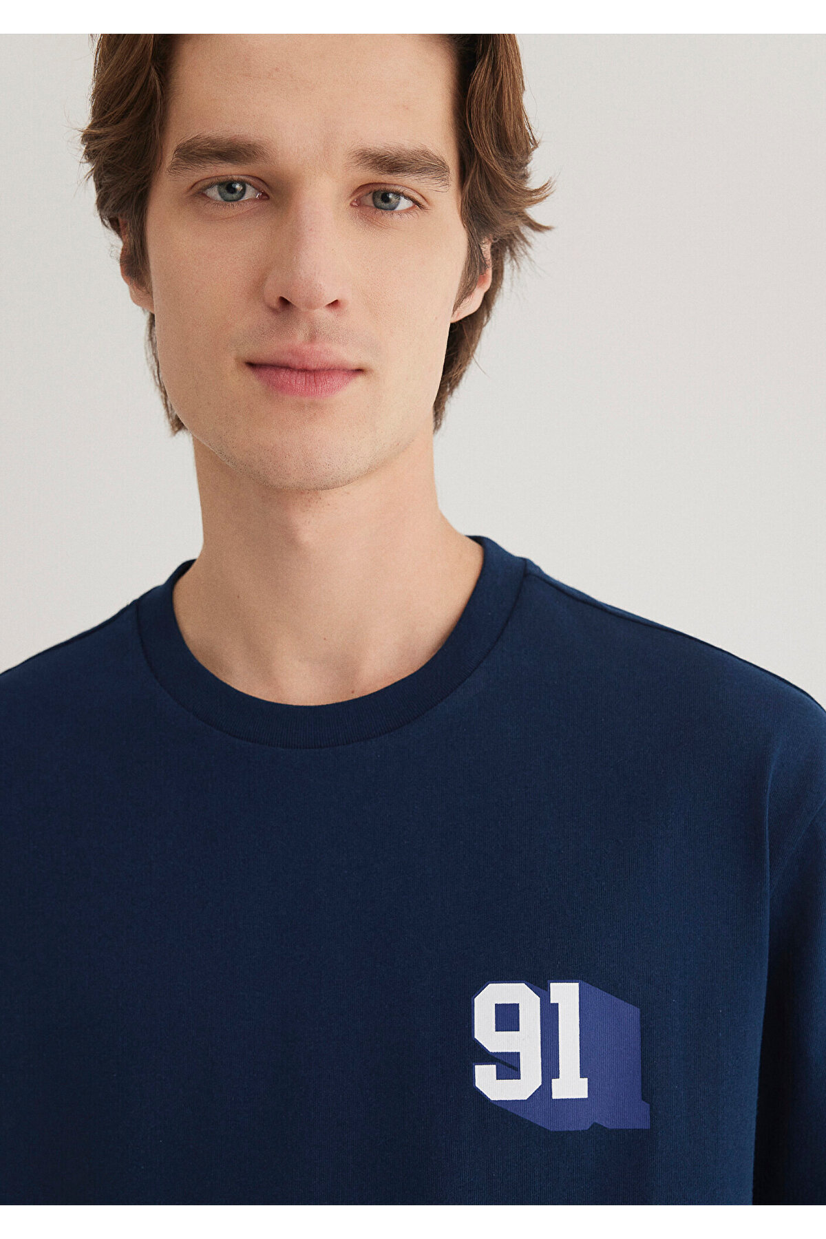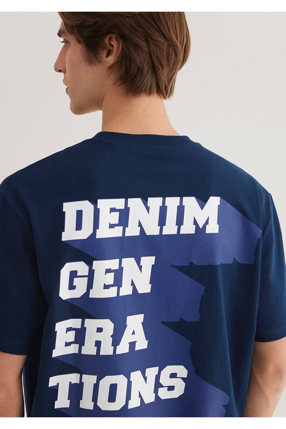 تیشرت طرحدار آبی نفتی طرح جین، مدل گشاد / برش آزاد 0612479-89353