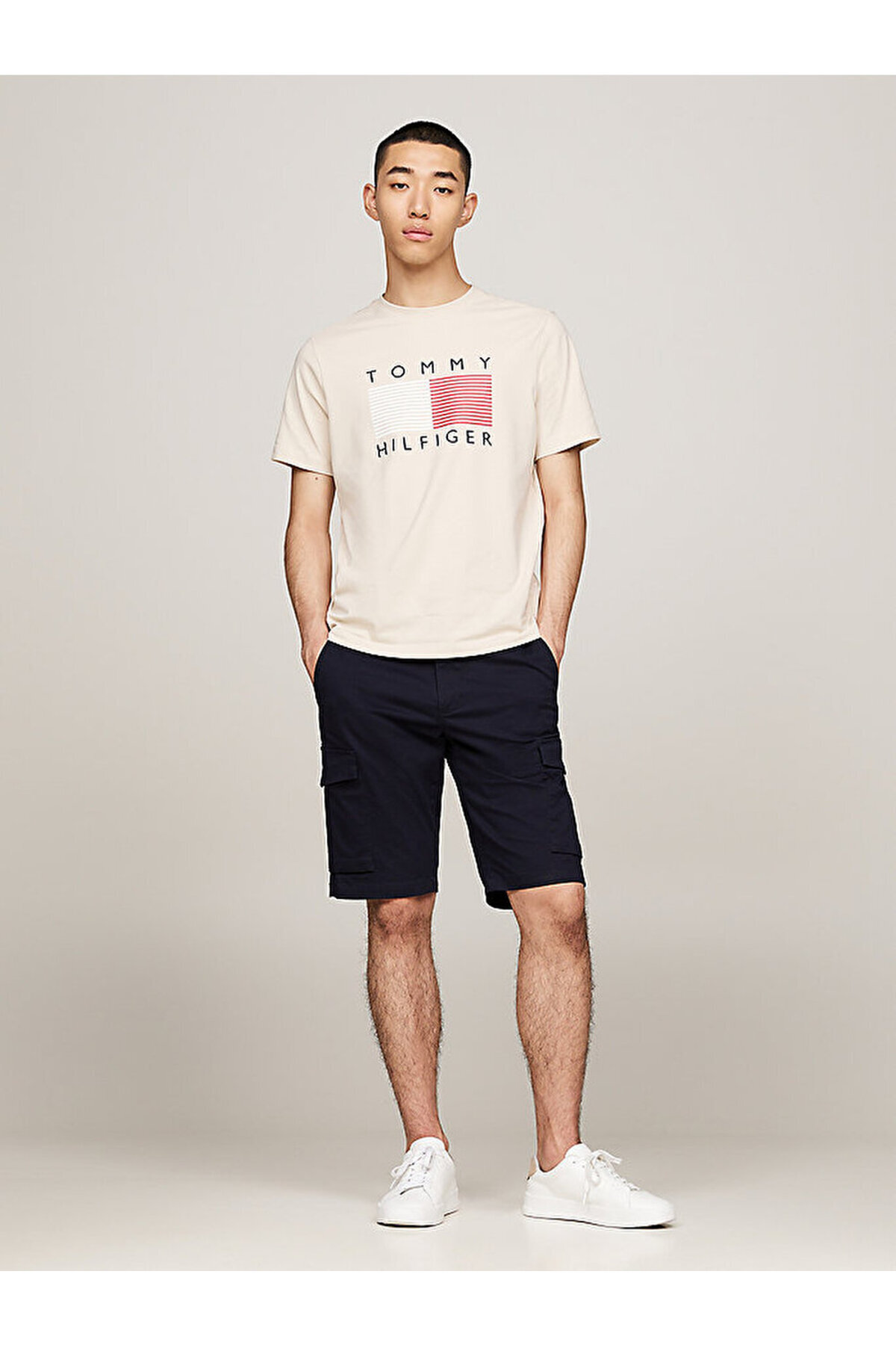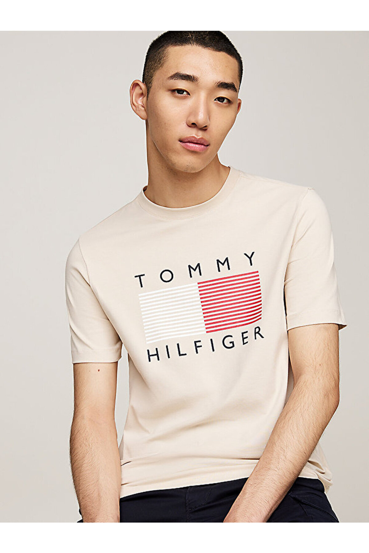 تیشرت تامی هیلفیگر بژ آستین کوتاه الاستان | | نمایندگی تامی هیلفیگر