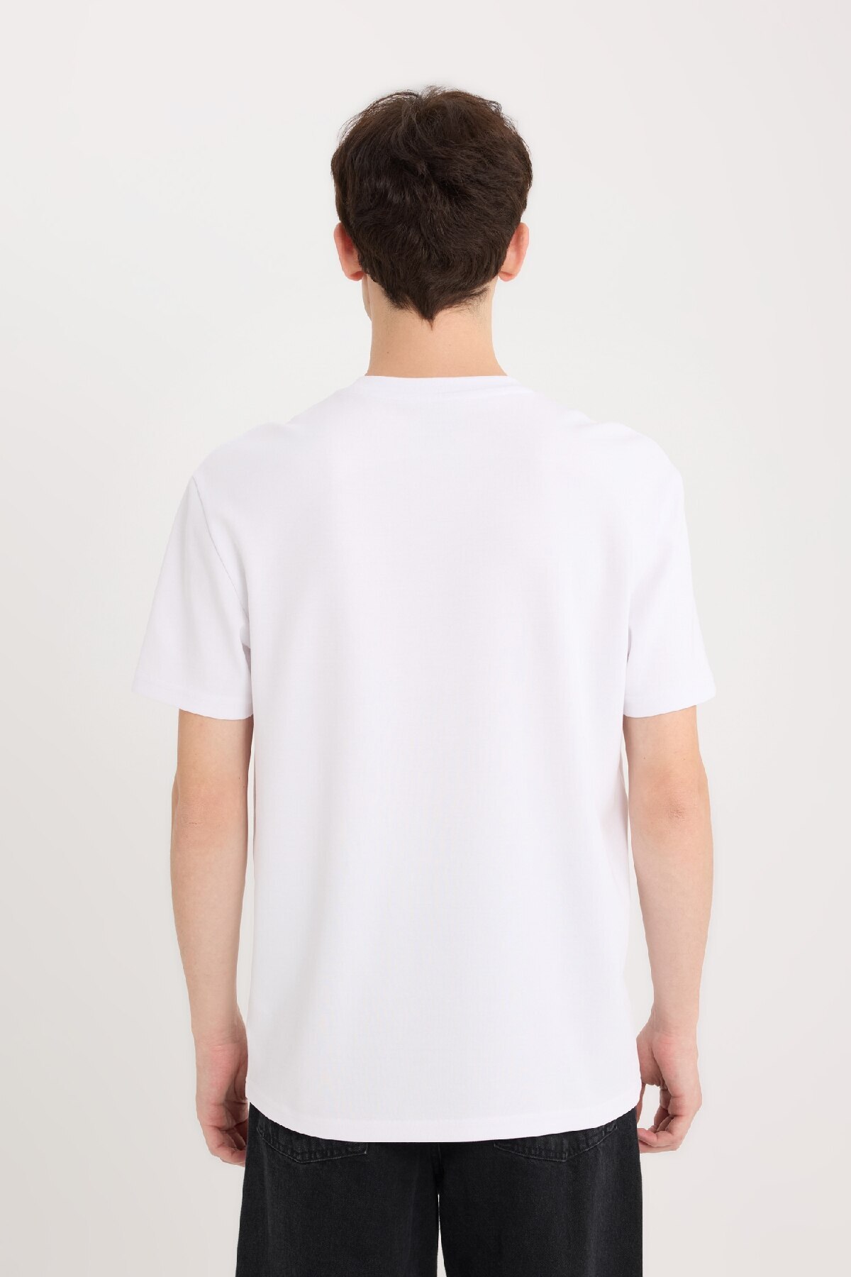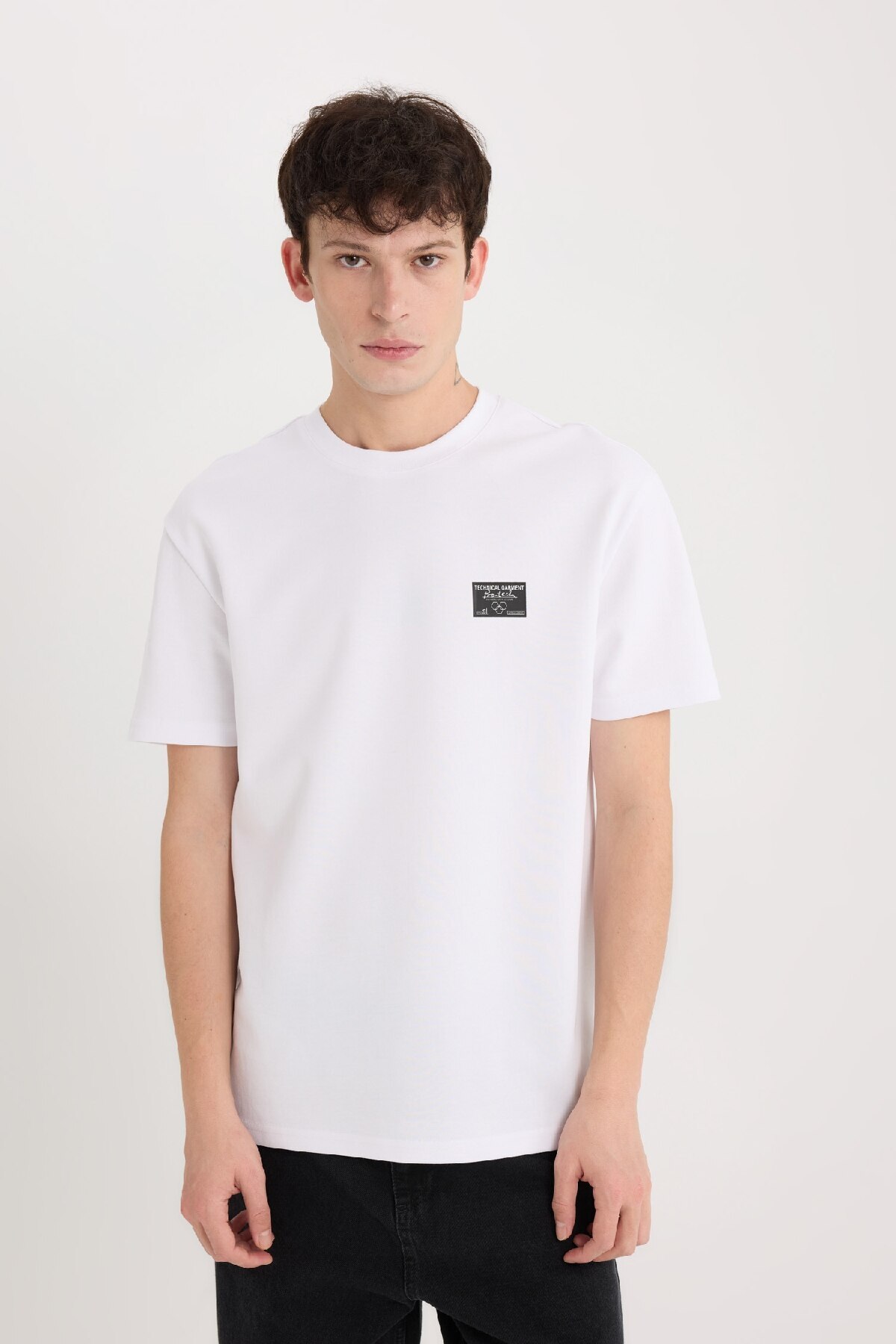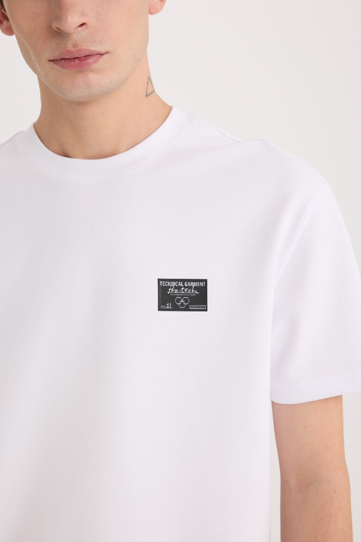 تیشرت دفاکتو سفید آستین کوتاه پارچه | تی شرت پارچه سنگین آستین کوتاه با چاپ یقه معمولی با چاپ شیک و پارچه بادوام خود متمایز است.