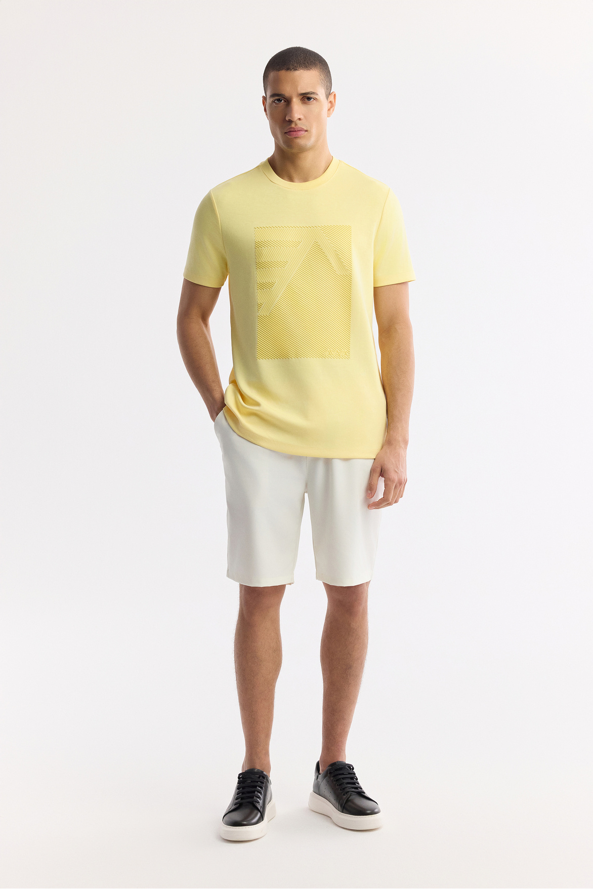 تی شرت مردانه یقه گرد زرد طرح دو کشباف اینترلاک سایز معمولی A51Y1072