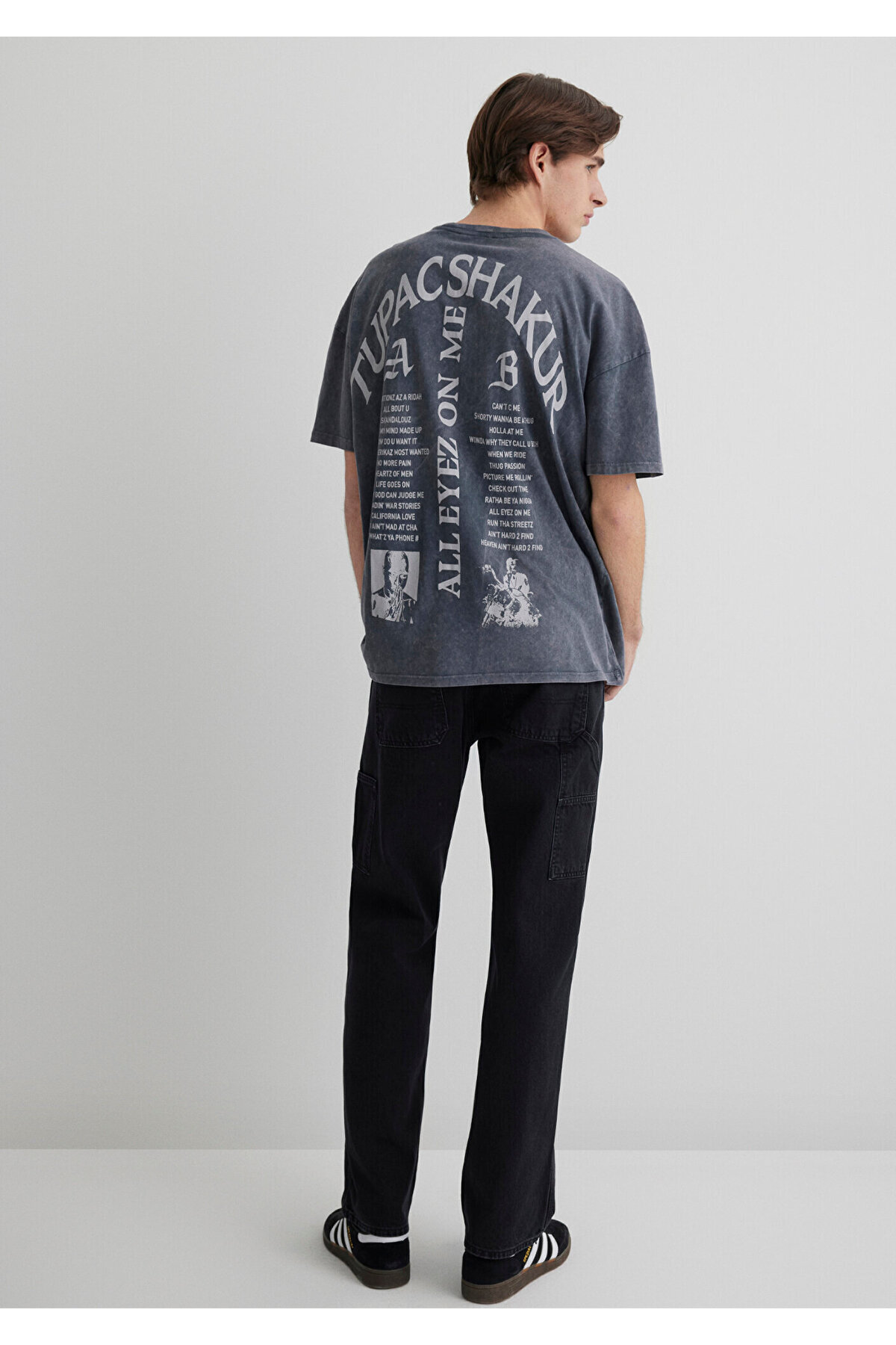 تی شرت آنتراسیت چاپ توپاک سایز بزرگ / برش پهن 0612294-900
