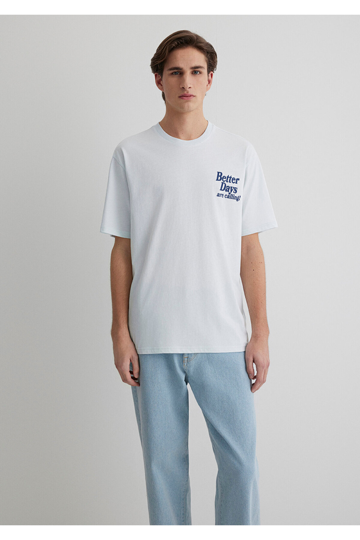 تی شرت آبی گشاد با چاپ Better Days 0612462-70793