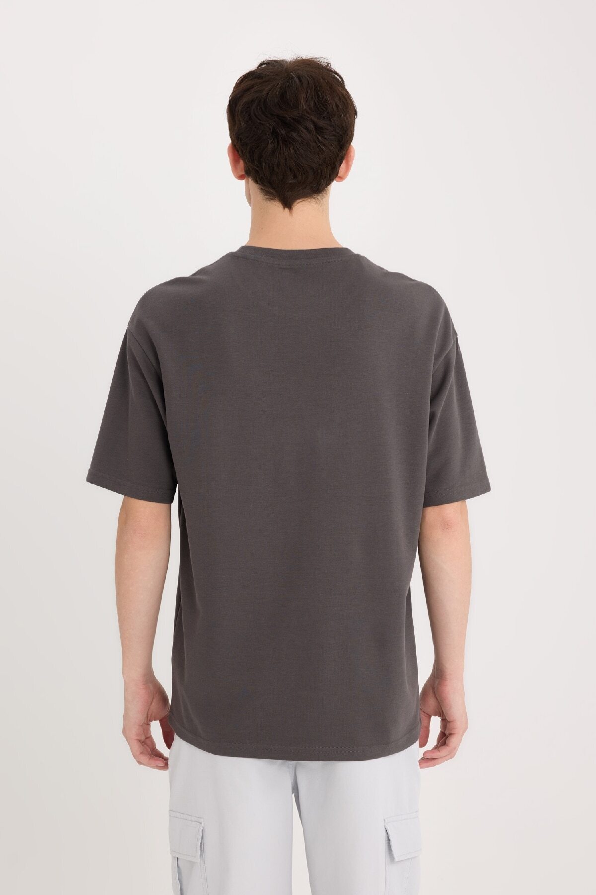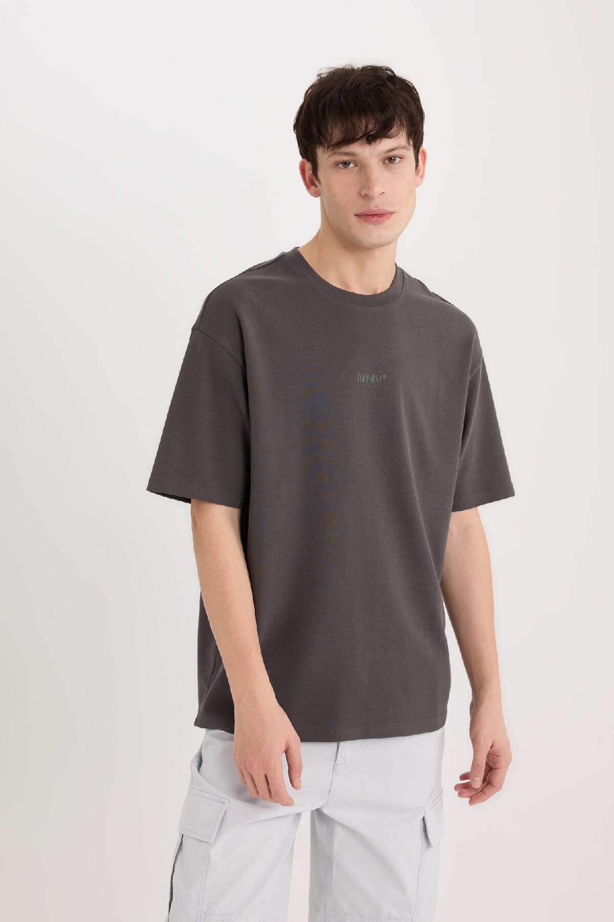 تیشرت دفاکتو خاکستری آستین کوتاه پارچه | تی شرت مردانه