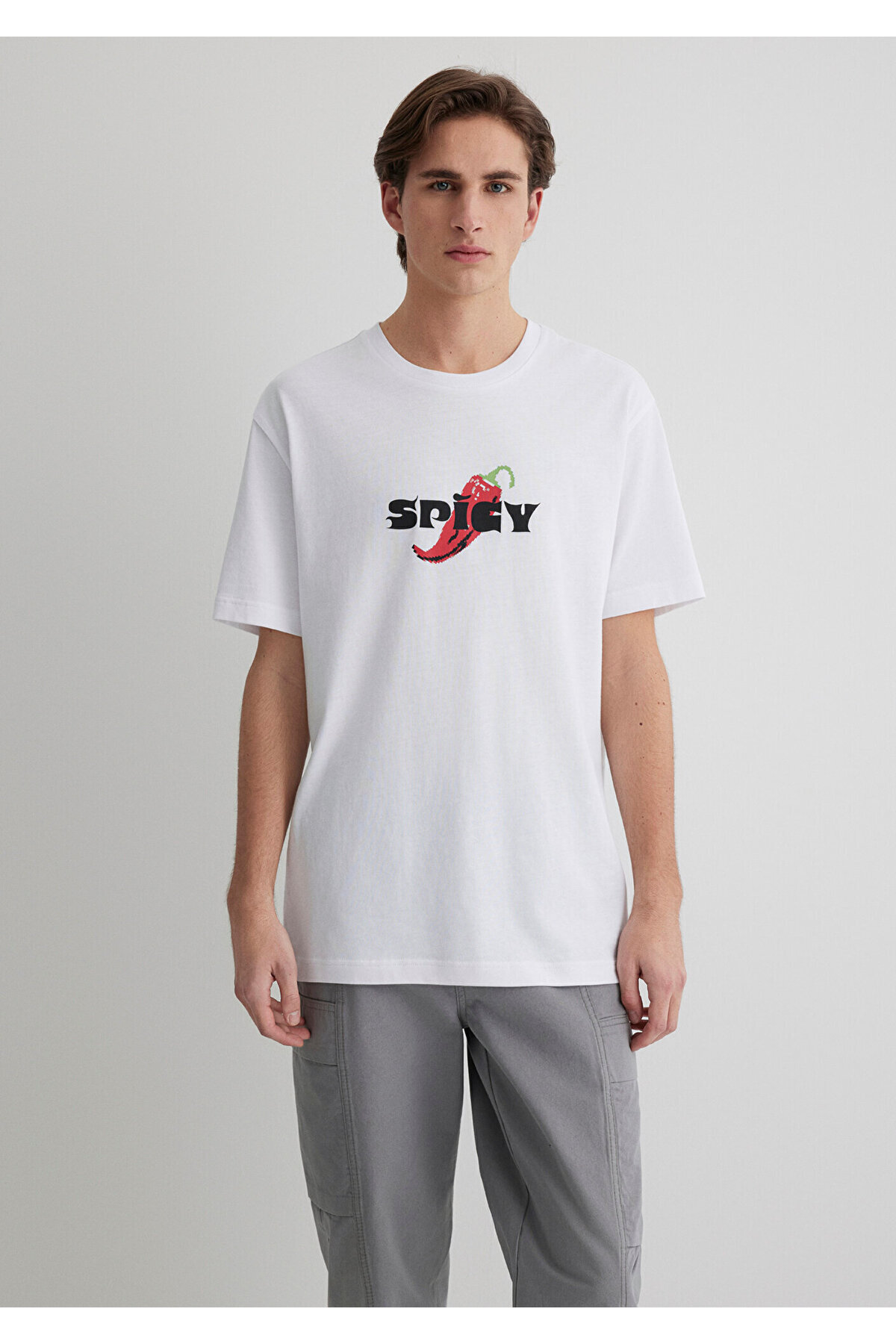 تیشرت سفید طرحدار تند، گشاد / برش آزاد و راحت 0612812-620