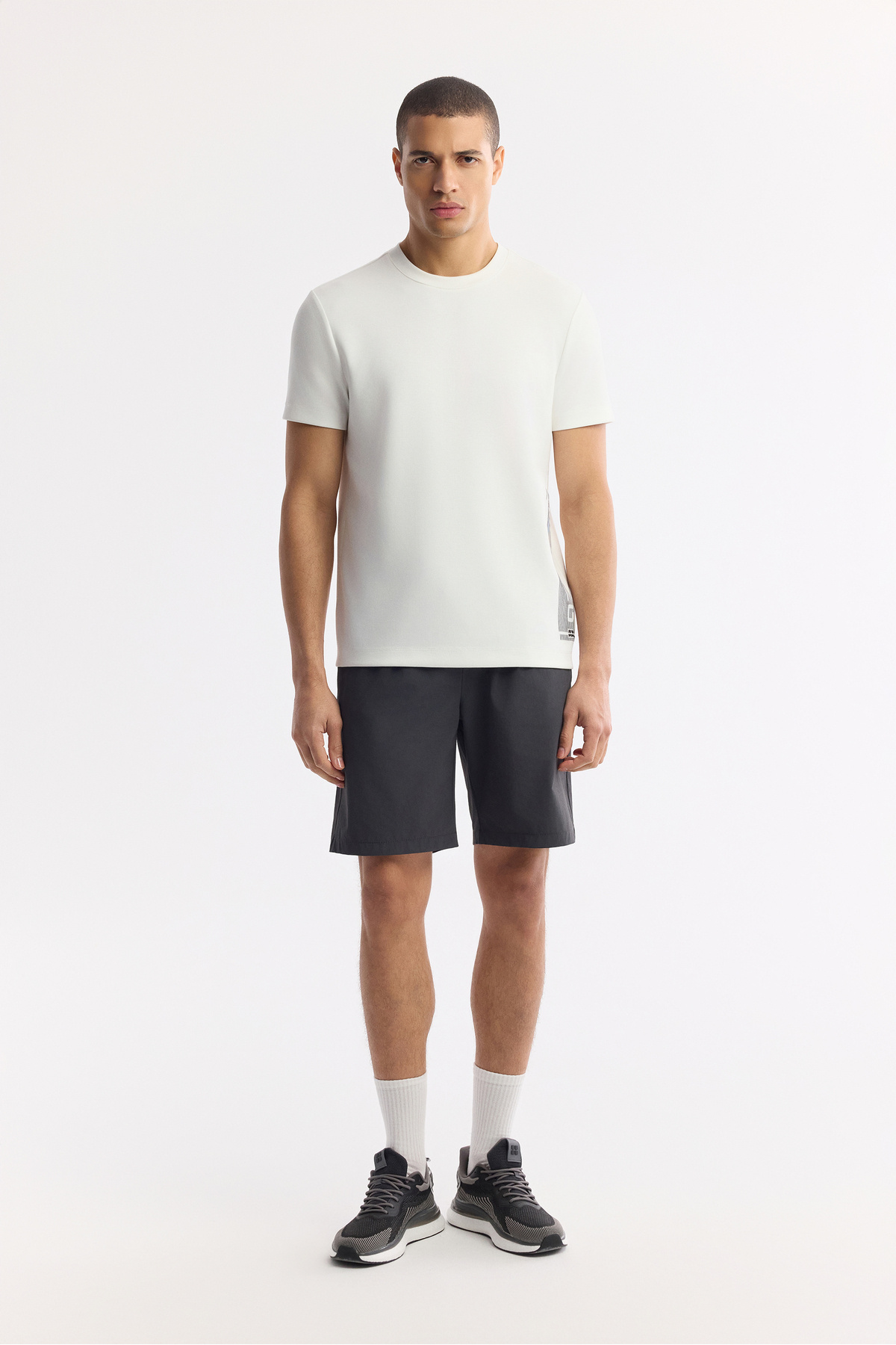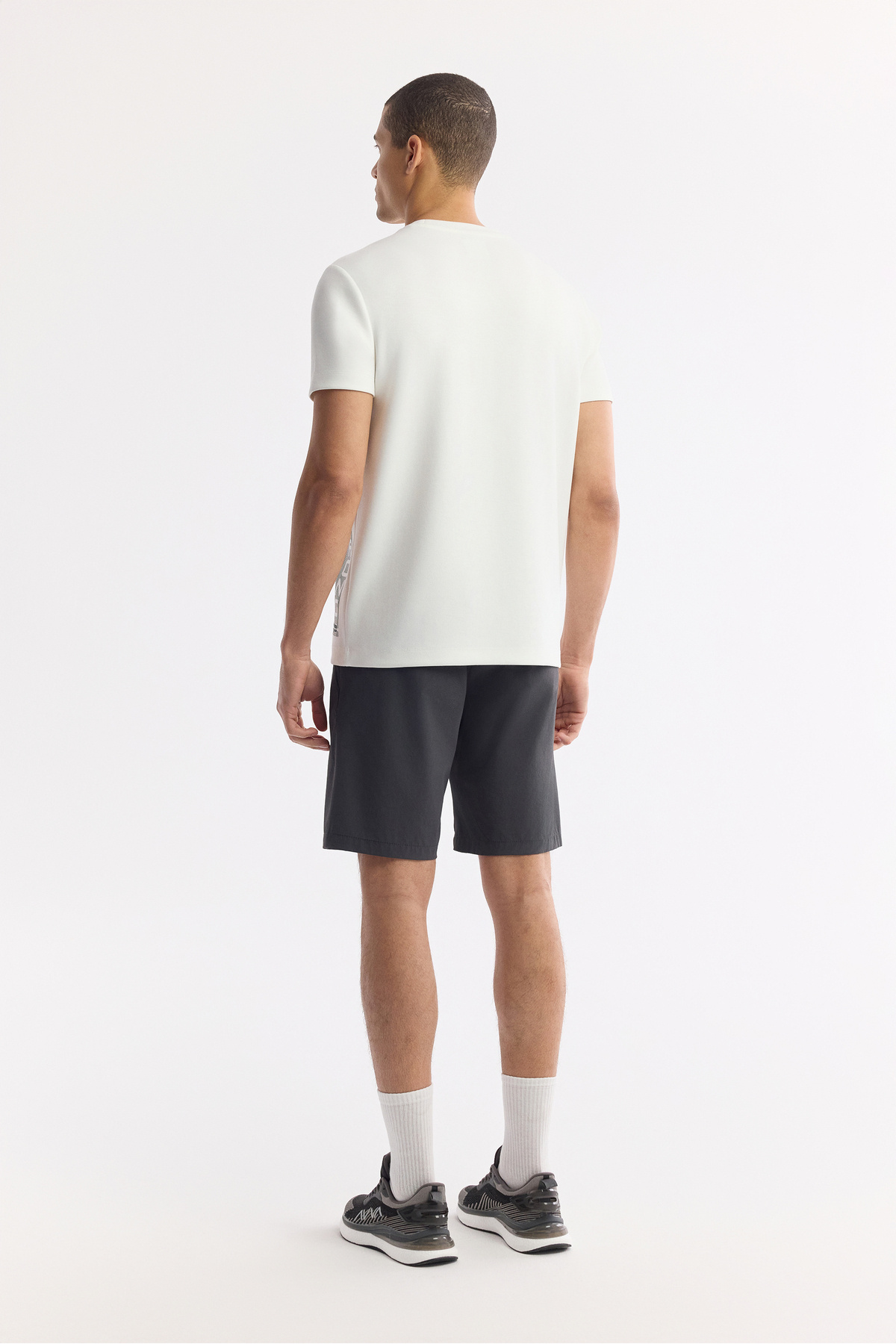 تی شرت مردانه یقه گرد سفید طرح دار دو کشباف اینترلاک سایز معمولی A51Y1136