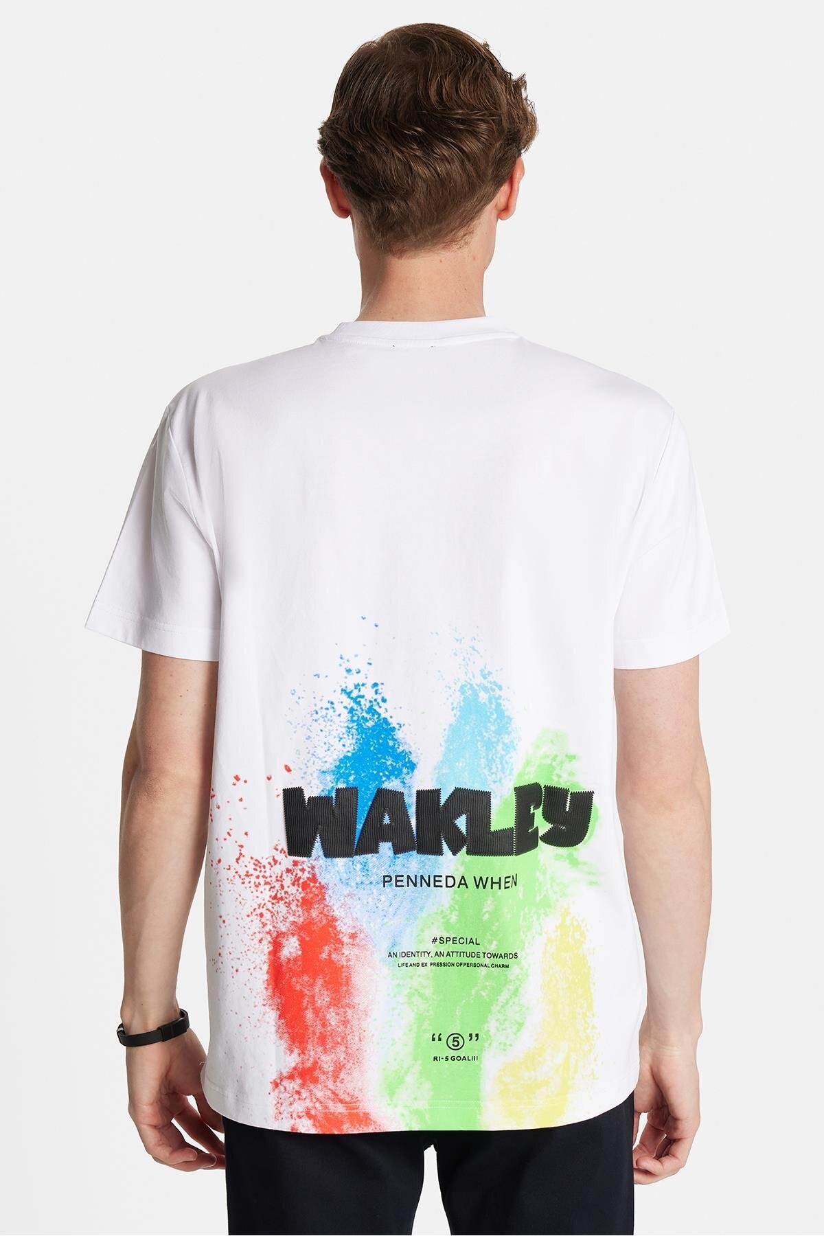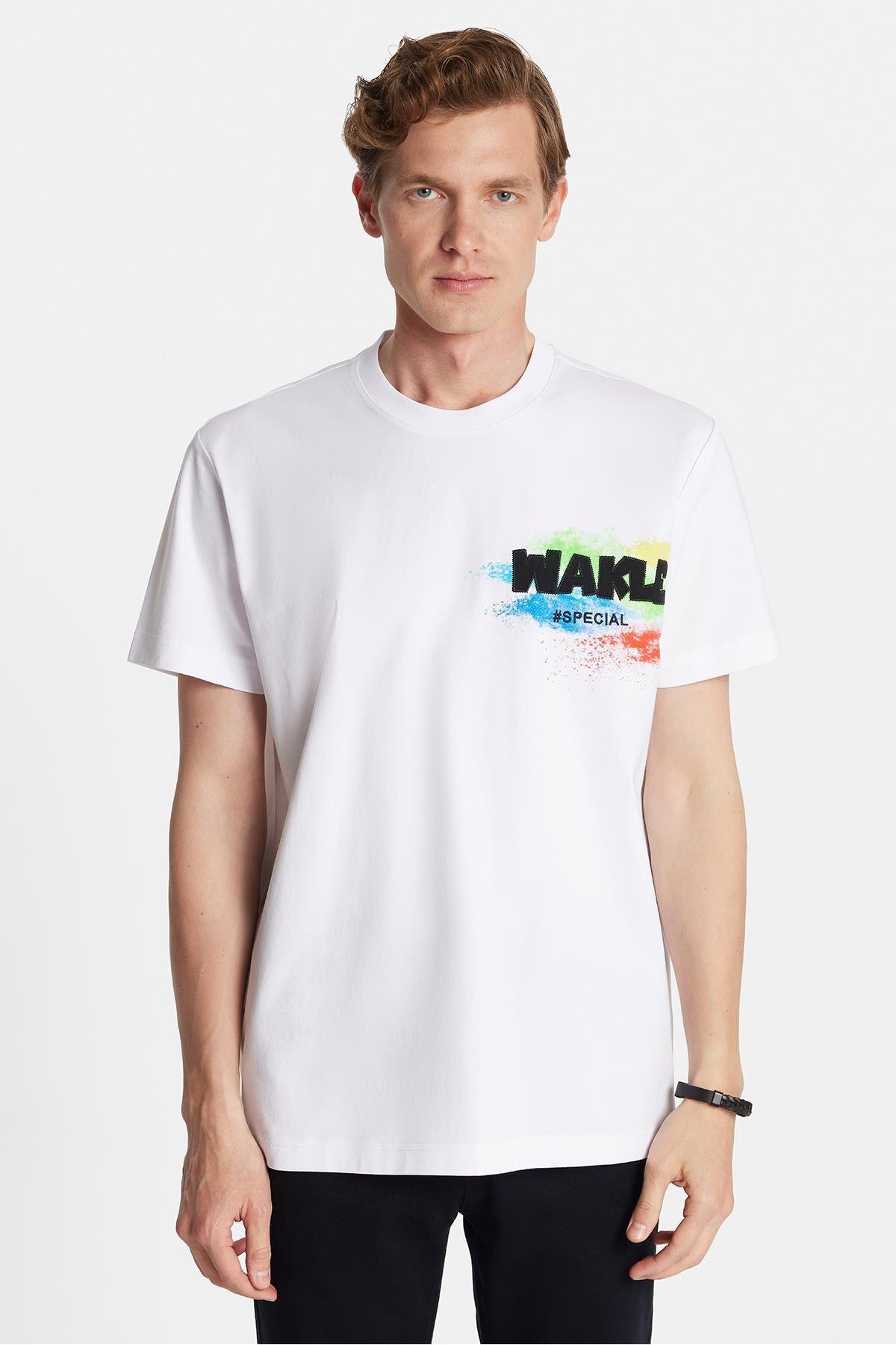 تیشرت مردانه سفید یقه گرد، طرحدار، راحت، راحت، جنس نخی، جلو و عقب، چاپ و گلدوزی دقیق