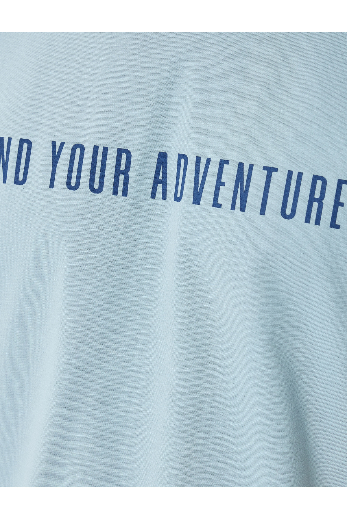تیشرت آستین کوتاه نخی یقه گرد طرح دار با چاپ شعار