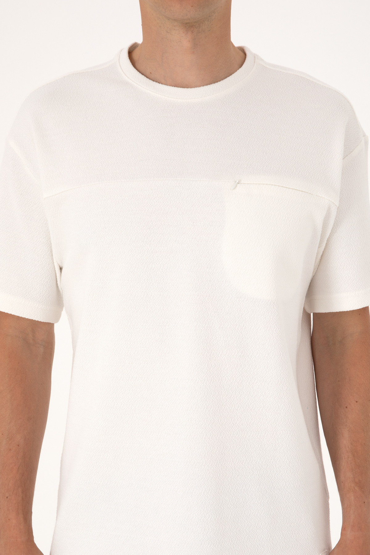 تیشرت مردانه یقه گرد کرم رنگ مدل 50300125-VR071
