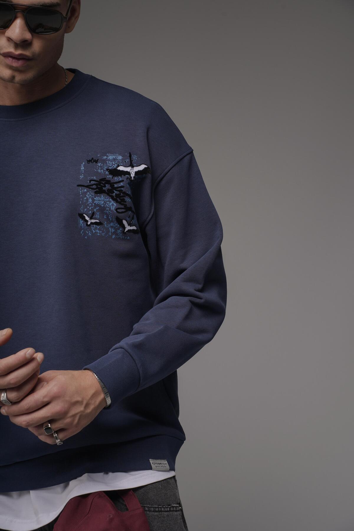 سویشرت یقه گرد با طرح لک لک و گلدوزی در پشت، مناسب برای سایز بزرگ