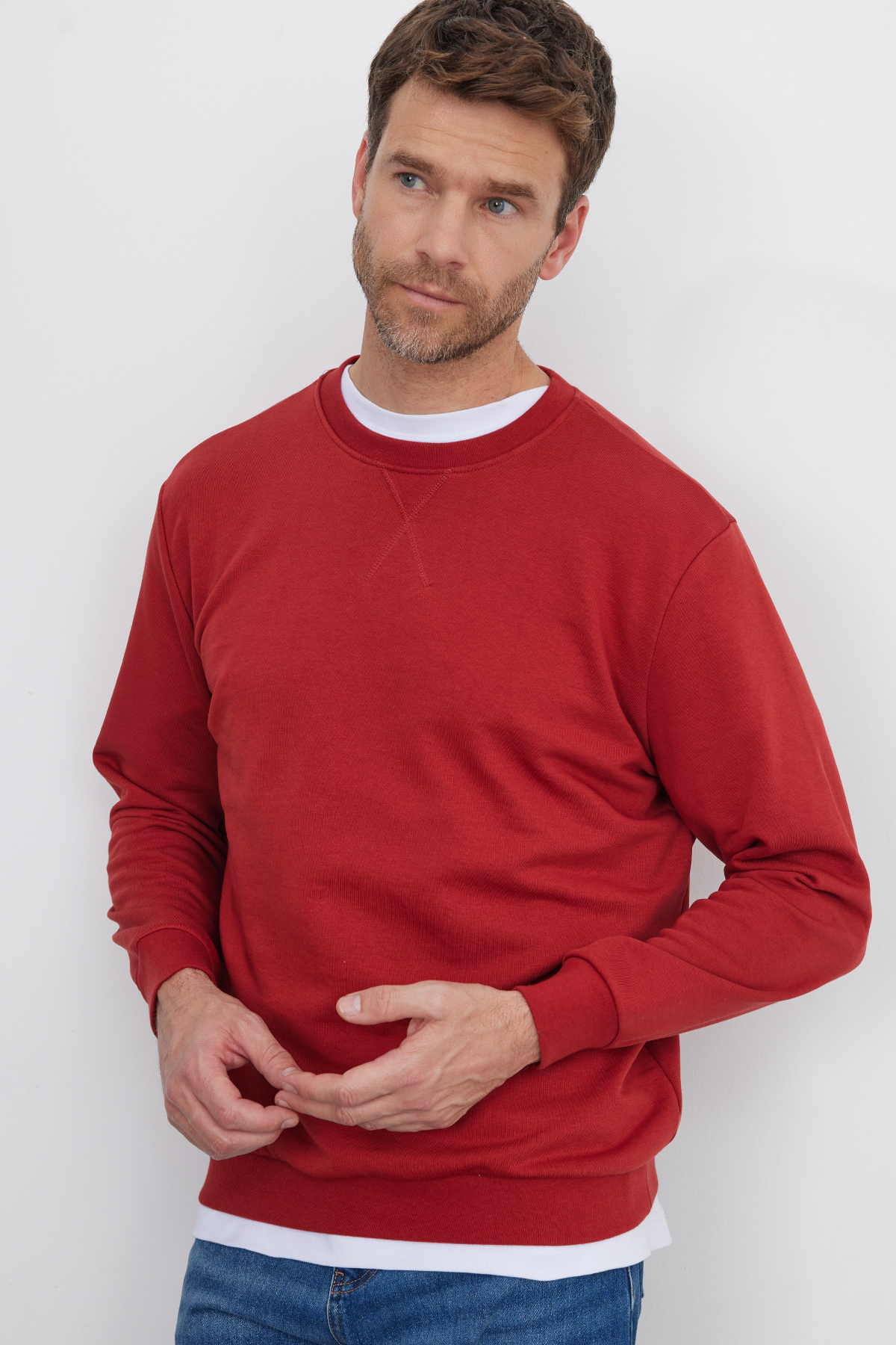 سویشرت یقه گرد ساده تراکوتا، مناسب برای هر دو جنس، مناسب برای همه سنین، 100% پنبه