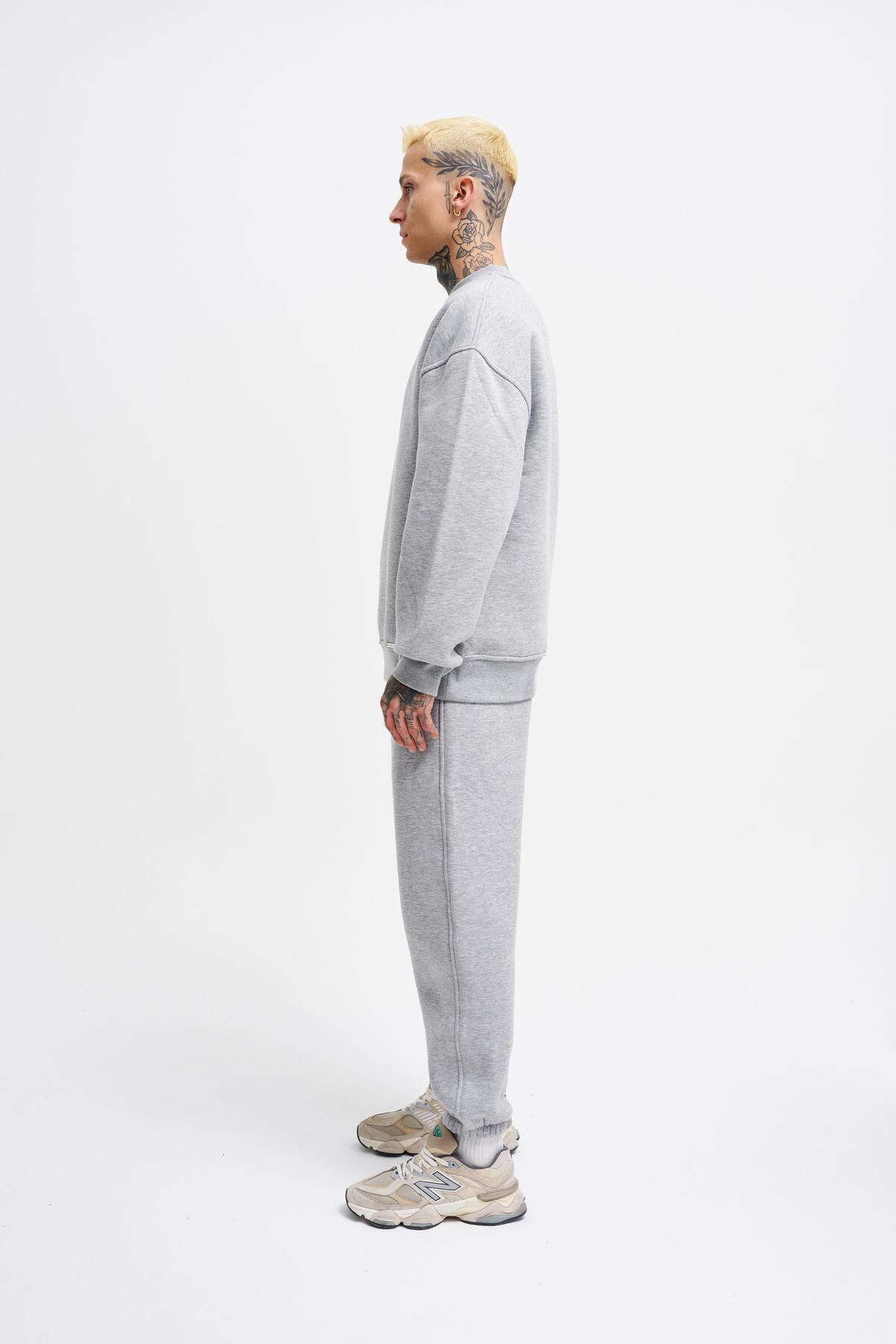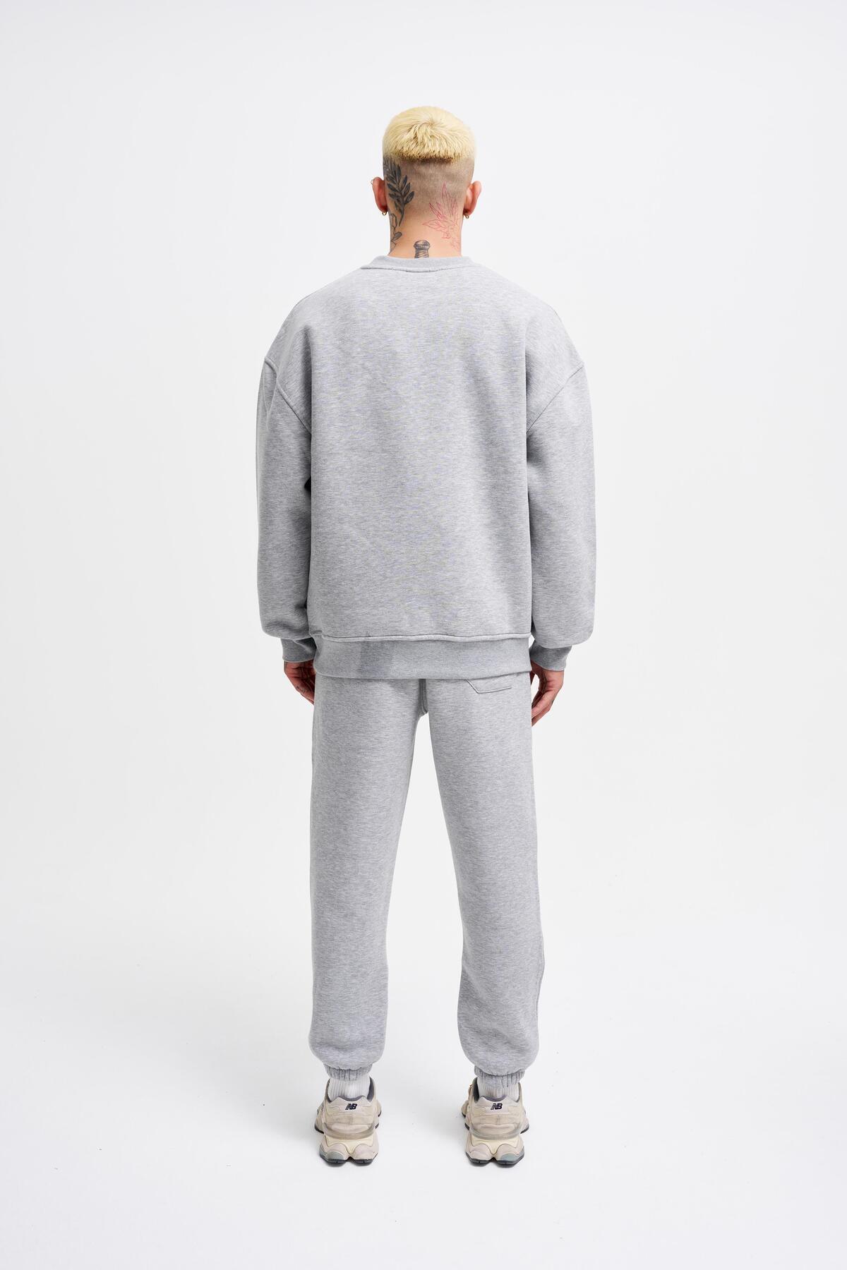 سویشرت مردانه سایز بزرگ یقه گرد ساده، خاکستری ملانژ