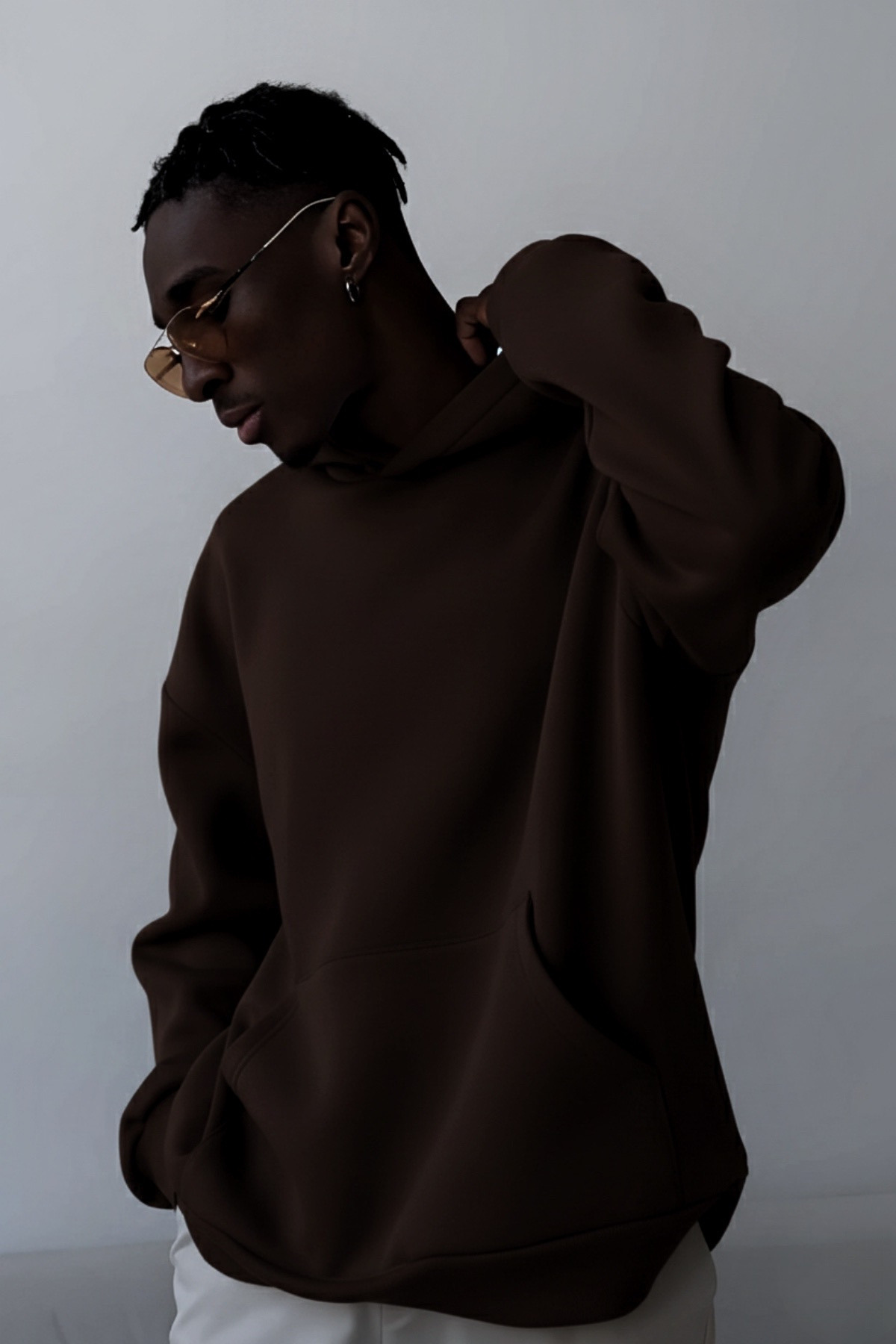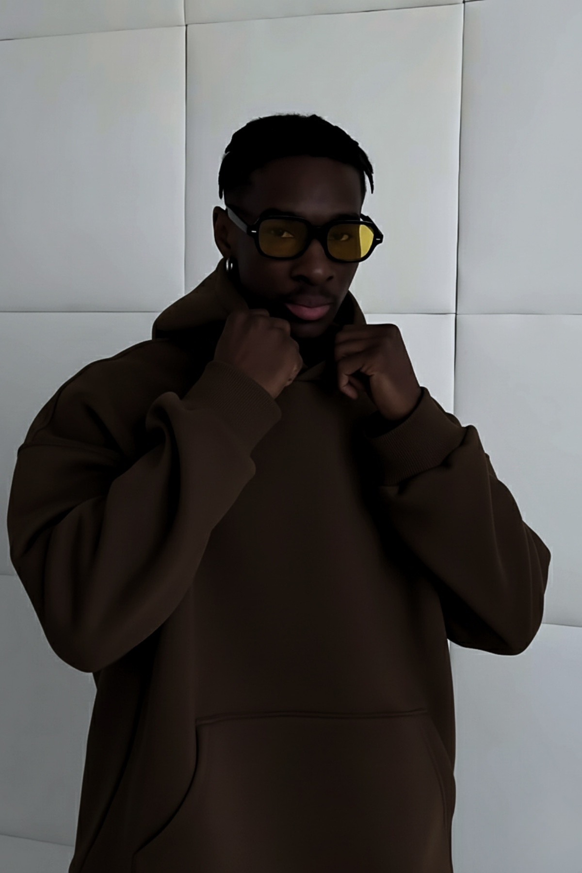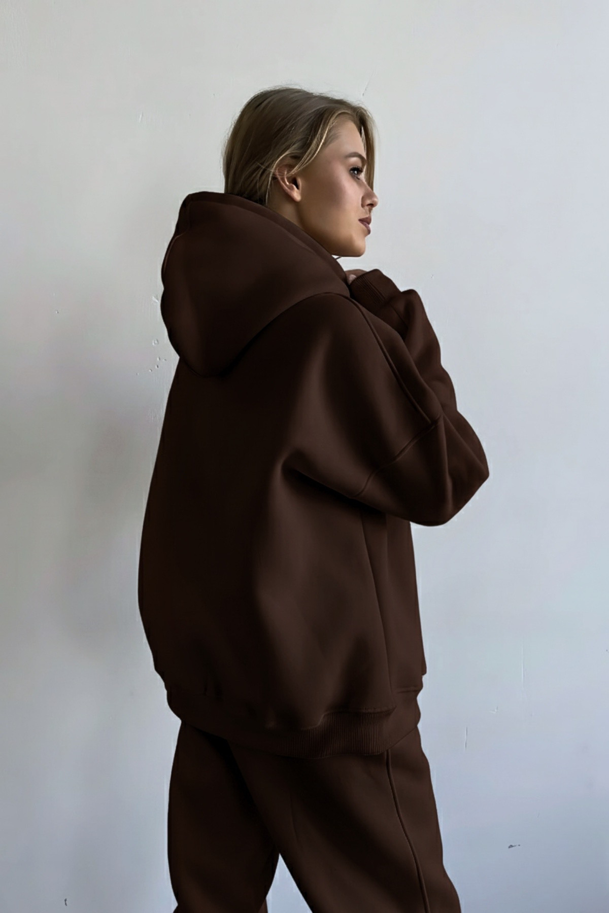 هودی سویشرت کلاه دار با آستر پشمی و سایز بزرگ از جنس پارچه نرم قهوه ای مخصوص یونیسکس