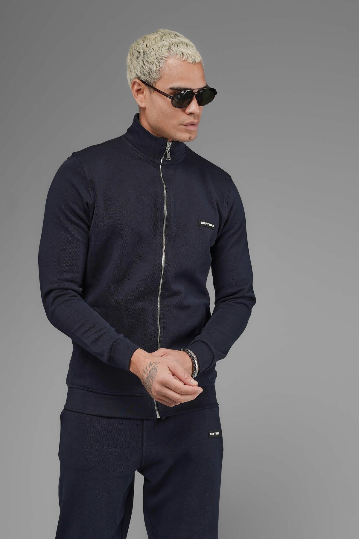 سویشرت یقه ایستاده معمولی یونیسکس مدل Piqué – سرمهای