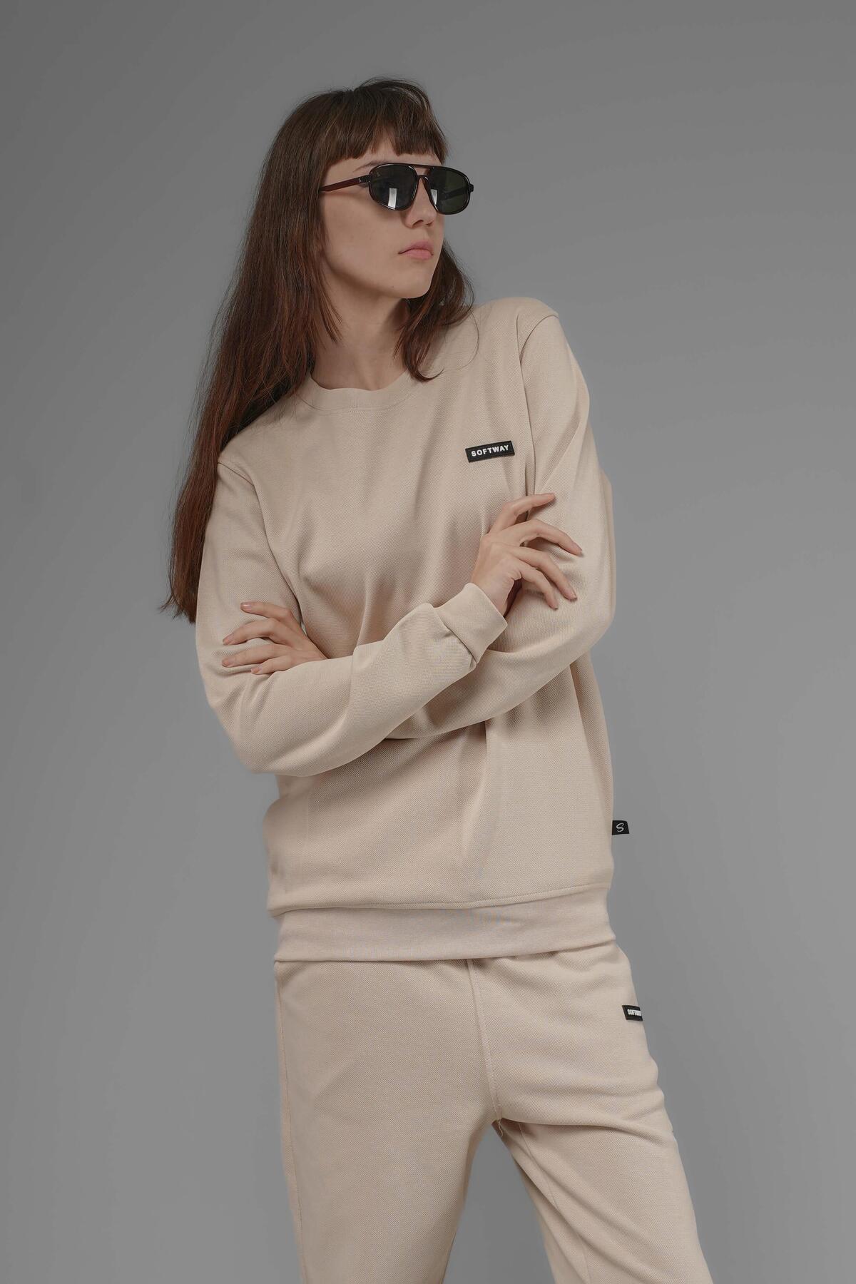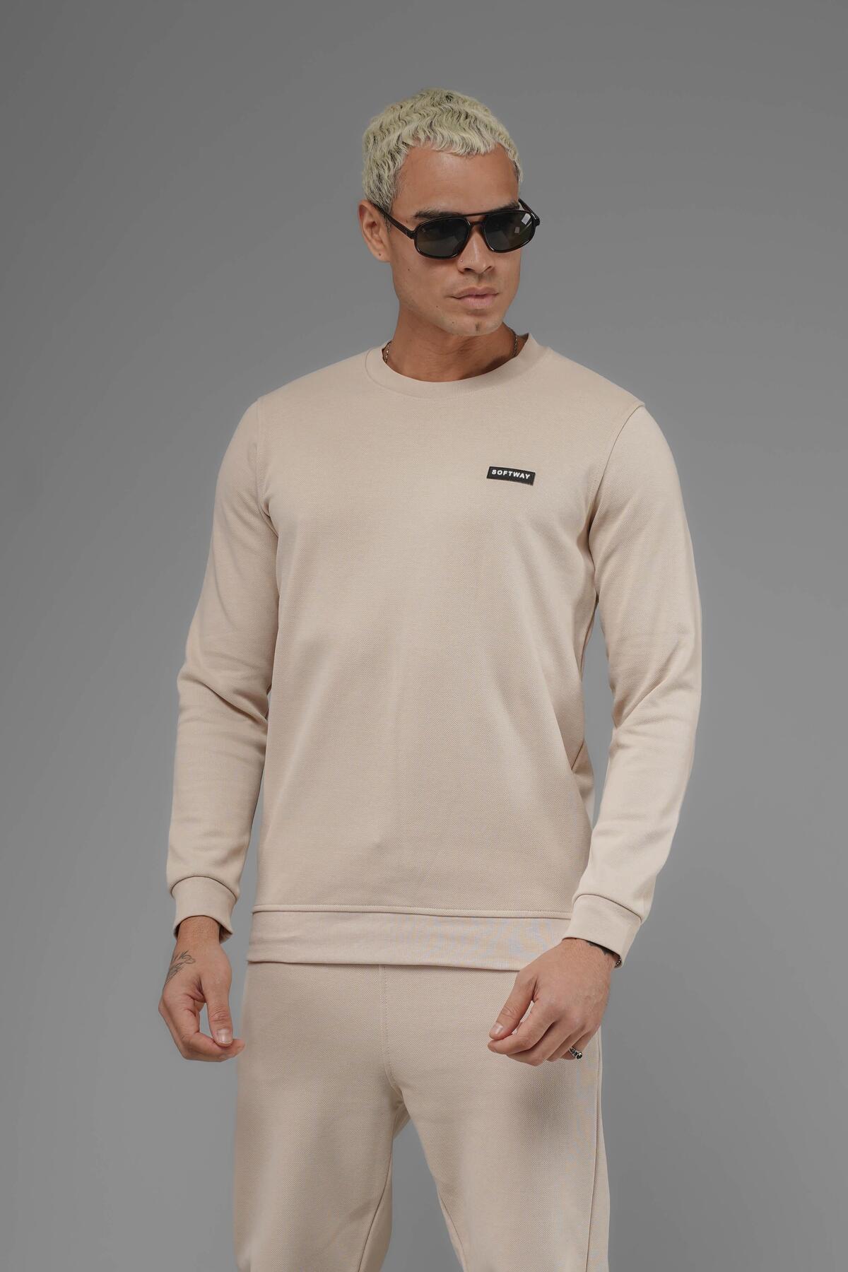 سویشرت بافتدار یقه گرد یونیسکس مدل Piqué Interlock – بژ