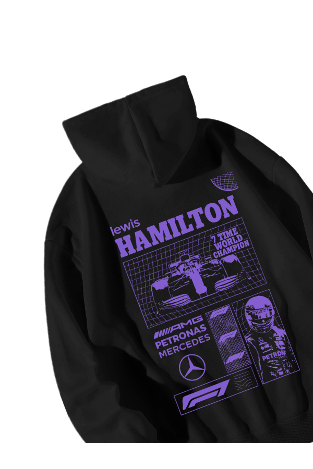 هودی کلاهدار سایز بزرگ طرح F1 Lewis زنانه و مردانه مشکی با جیب کانگورویی