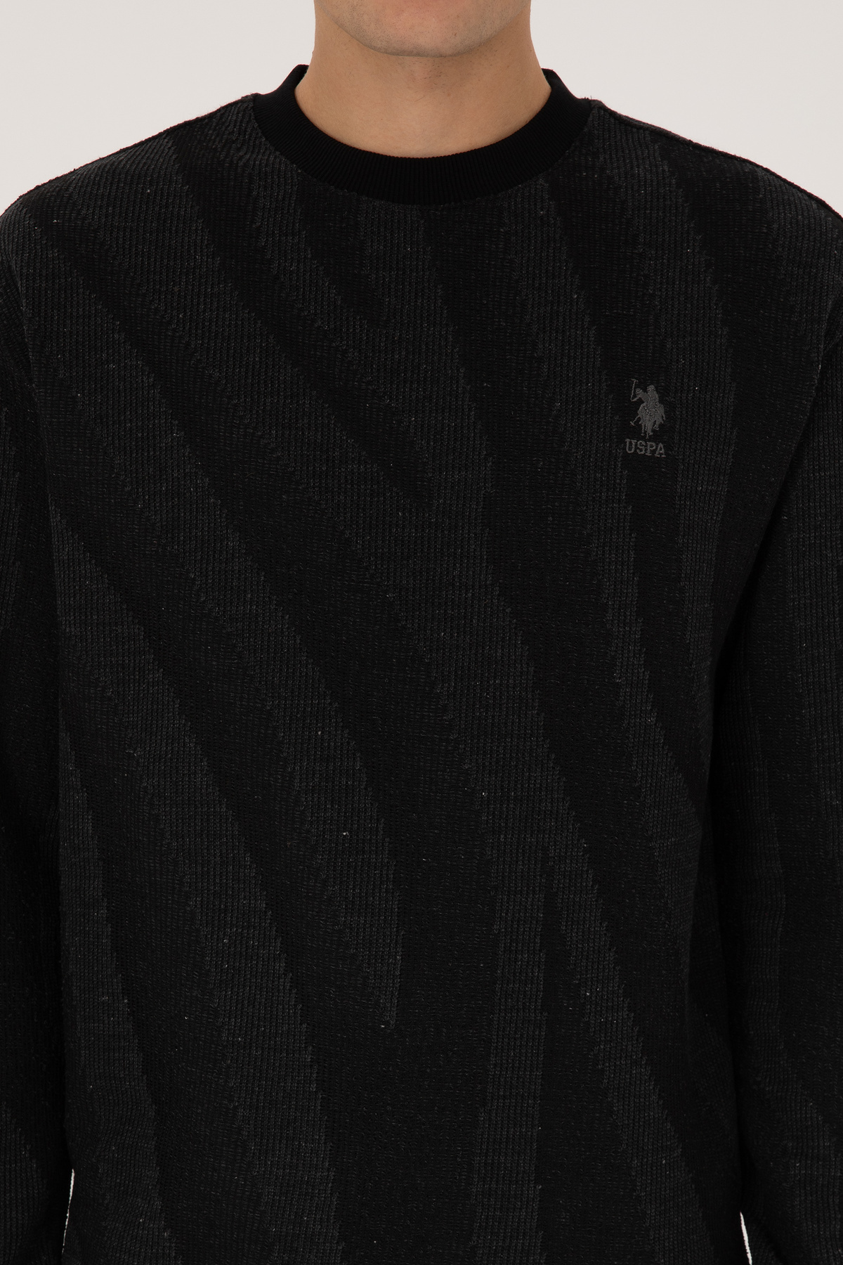 سویشرت مردانه یقه گرد مشکی راحت فیت 50308901-VR046