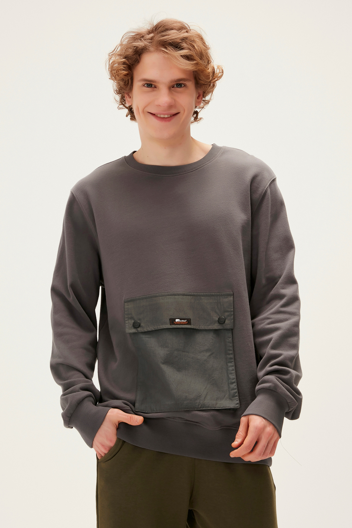 سویشرت مردانه جیبدار کانگورو، یقه گرد، خاکستری تیره
