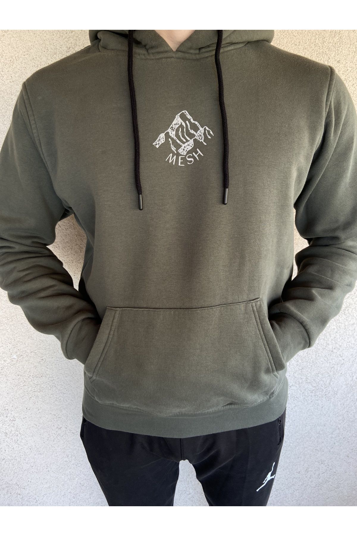 سویشرت مردانه کلاهدار خاکی، فیت راحت، پنبهای نرم و برسخورده، کلاهدار طرحدار زمستانی