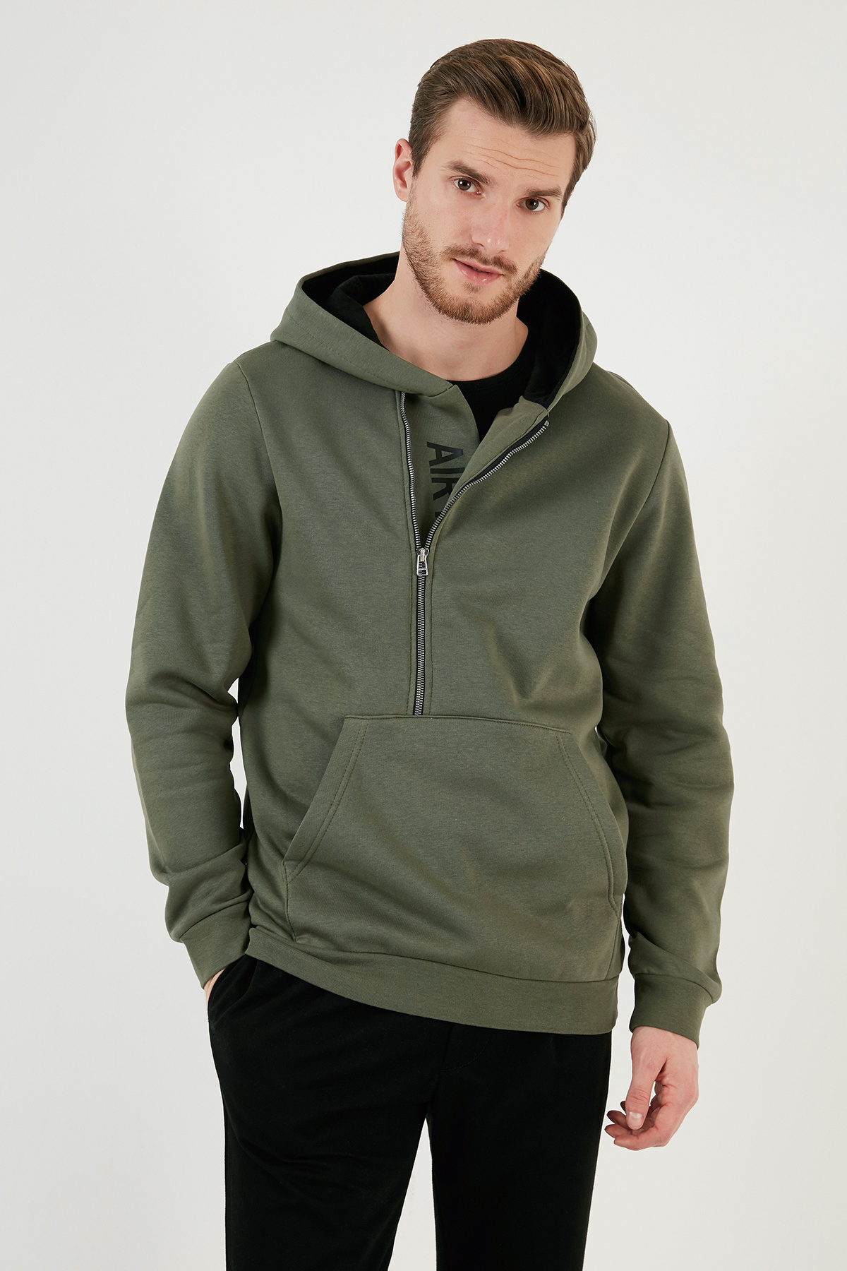 سویشرت مردانه کلاه دار اسلیم فیت با جیب کانگورویی و زیپ ۵۷۵۷۰۷