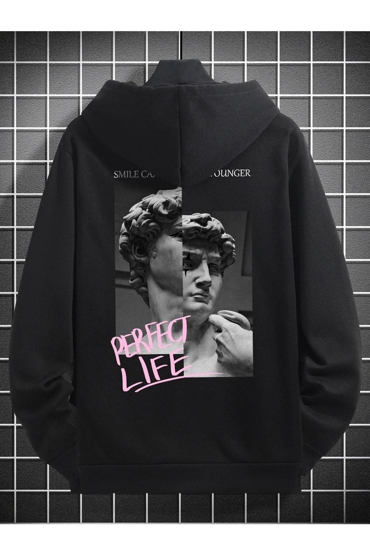 سویشرت پرفکت لایف – سویشرت کلاهدار مشکی چاپدار سایز بزرگ