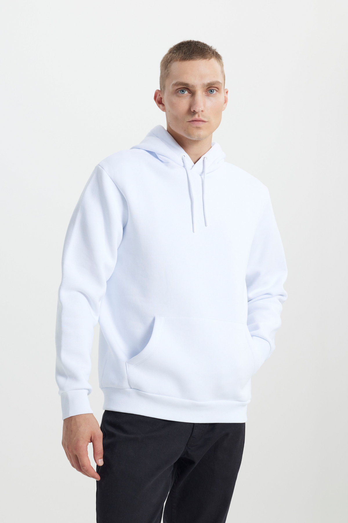 سویشرت نخی کلاهدار مردانه سفید استاندارد سایز معمولی برشدار پشمی آستردار سه نخ