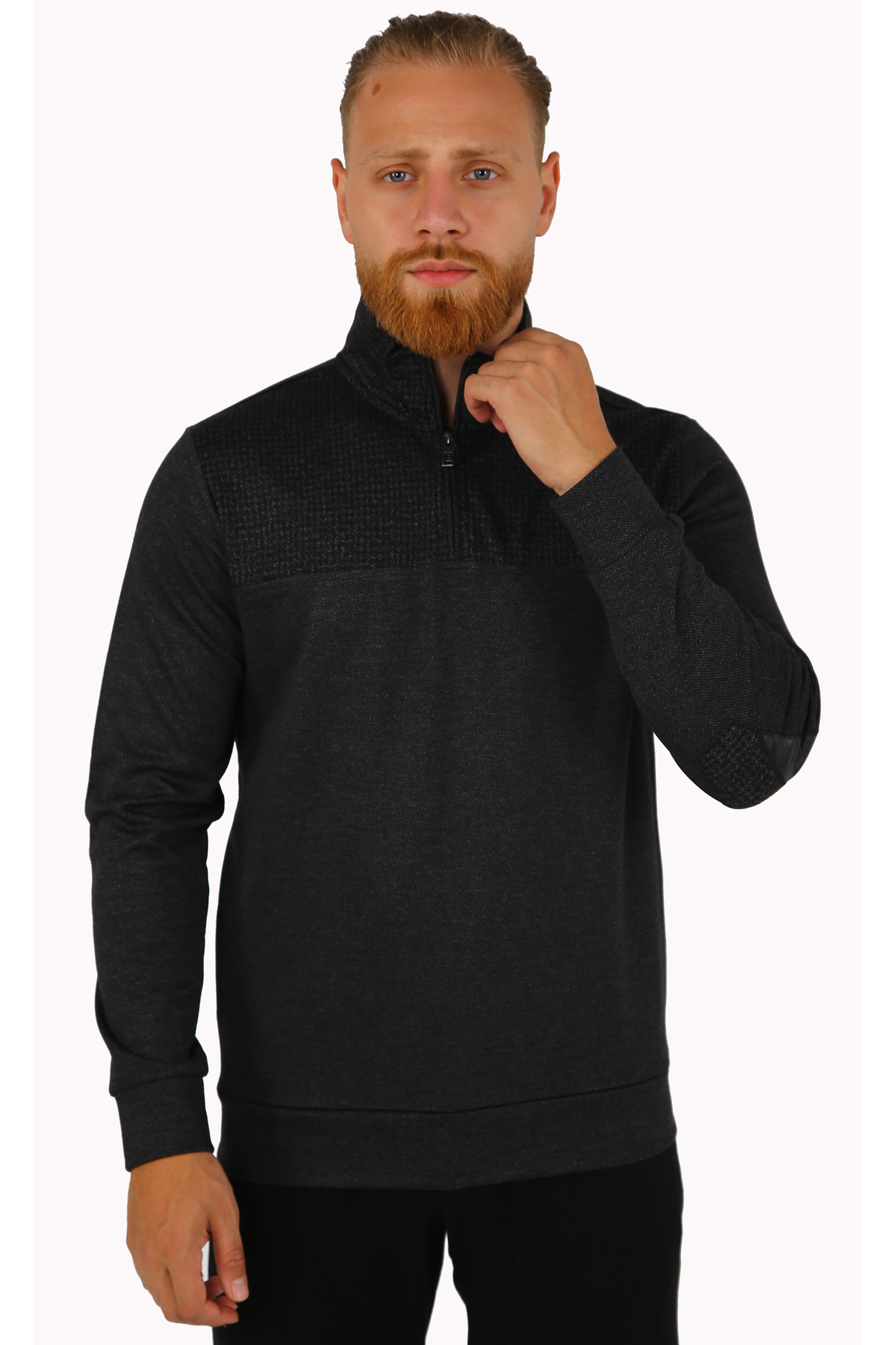 سویشرت یقه بلند مشکی طرحدار ژاکارد مردانه BRG
