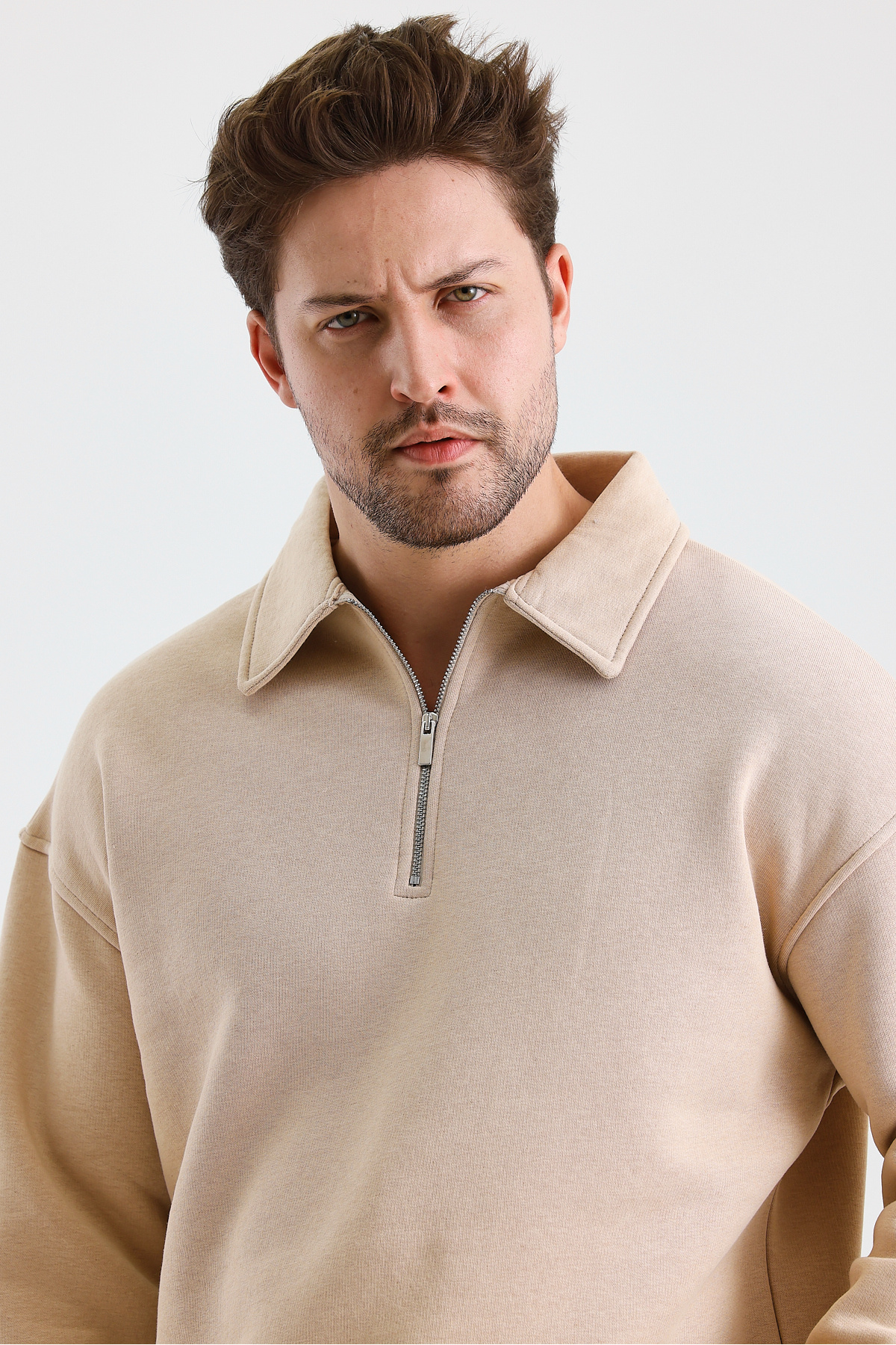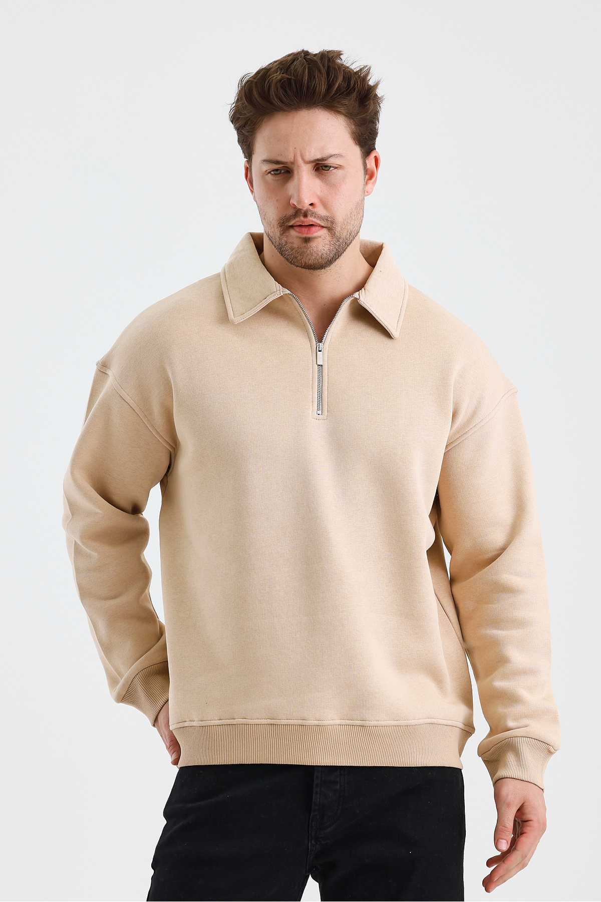 سویشرت نخی نیم زیپ مردانه یقه پولو سایز بزرگ