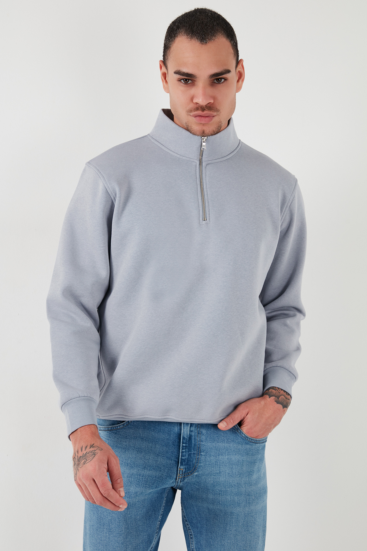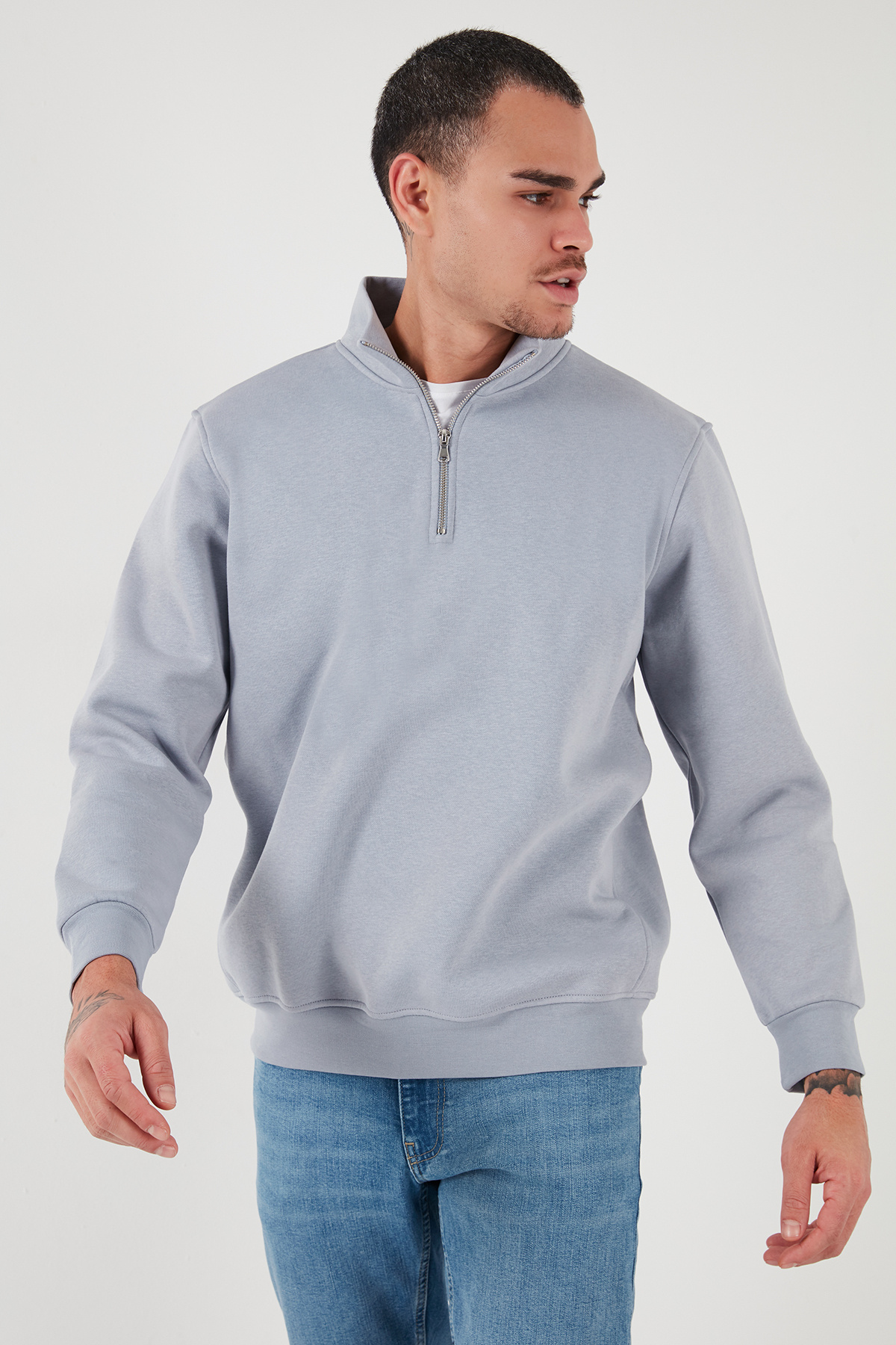 سویشرت مردانه یقه ایستاده نیم زیپ از جنس کتان سایز معمولی SWEAT کد ۵۹۰۵۲۵۹۲