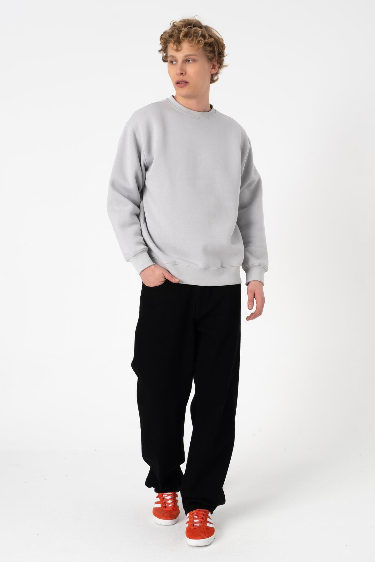 سویشرت مردانه پایه برس خورده سایز بزرگ به رنگ سنگی