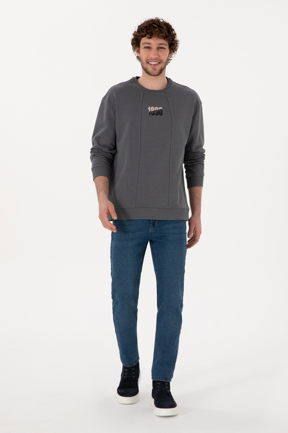 سویشرت مردانه یقه گرد، رنگ آنتراسیت، مناسب برای راحتی و تناسب اندام، کد ۵۰۲۹۳۴۳۰-VR۰۰۶