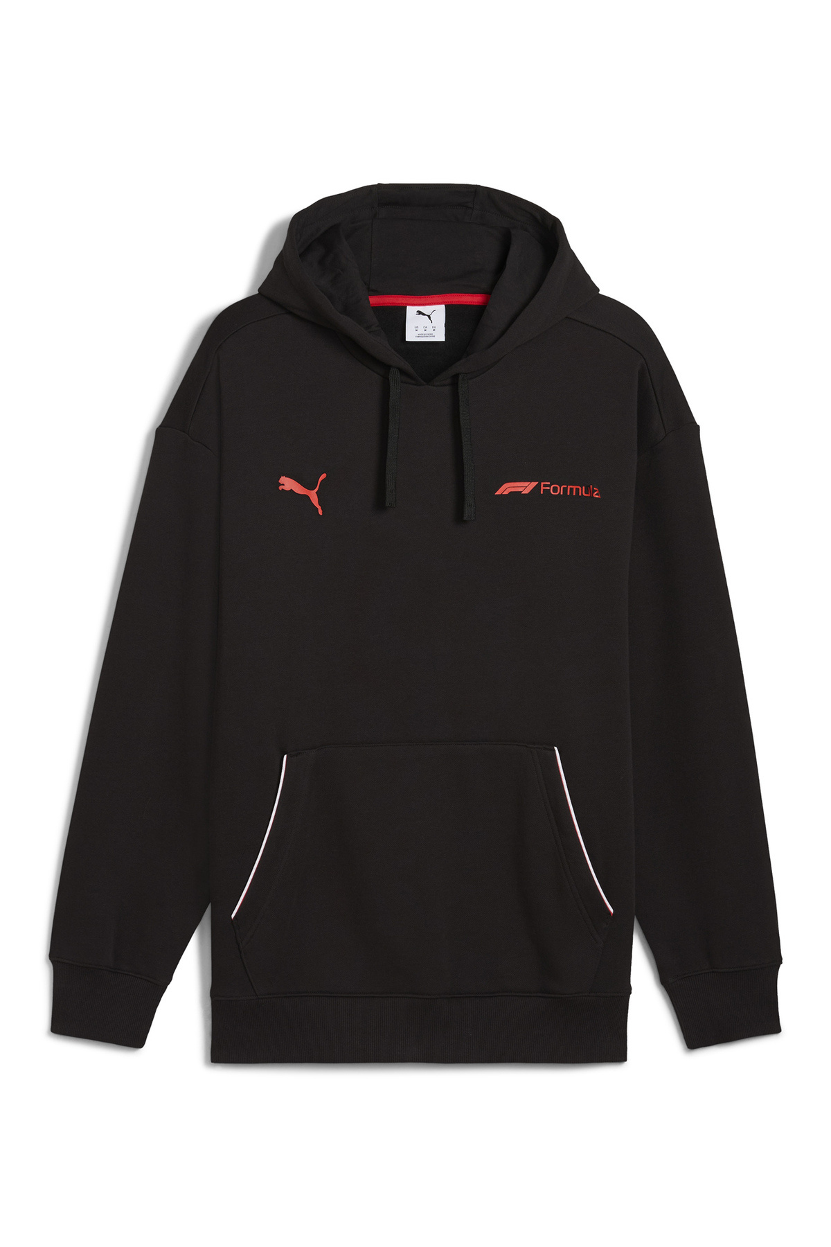 سویشرت مردانه ساده یقه کلاهدار مشکی، سایز معمولی، کد ۶۳۰۱۲۱۰۱، مدل F1 ESS+، دارای طرح گرافیکی PUM