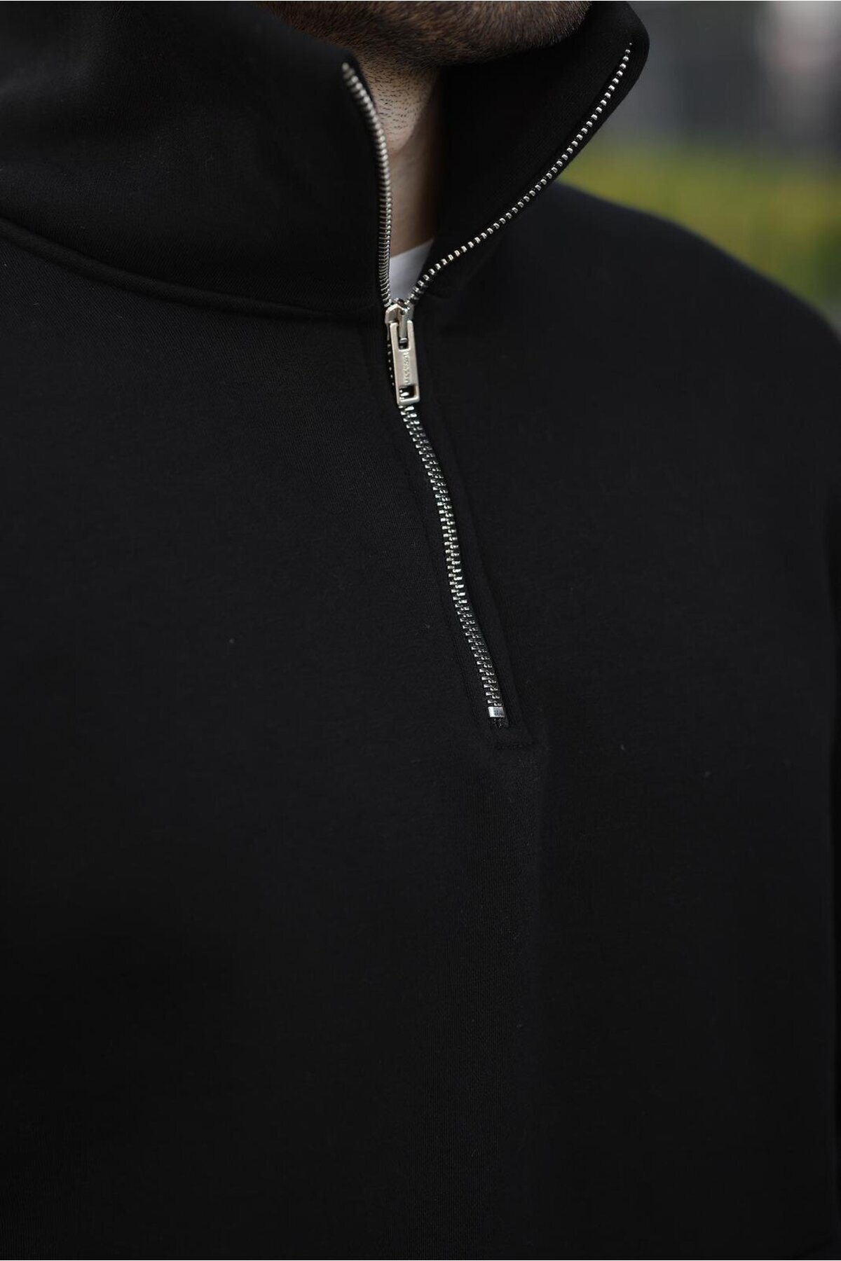 سویشرت مردانه مشکی یقه ایستاده زیپدار با جیب کانگورو E7159