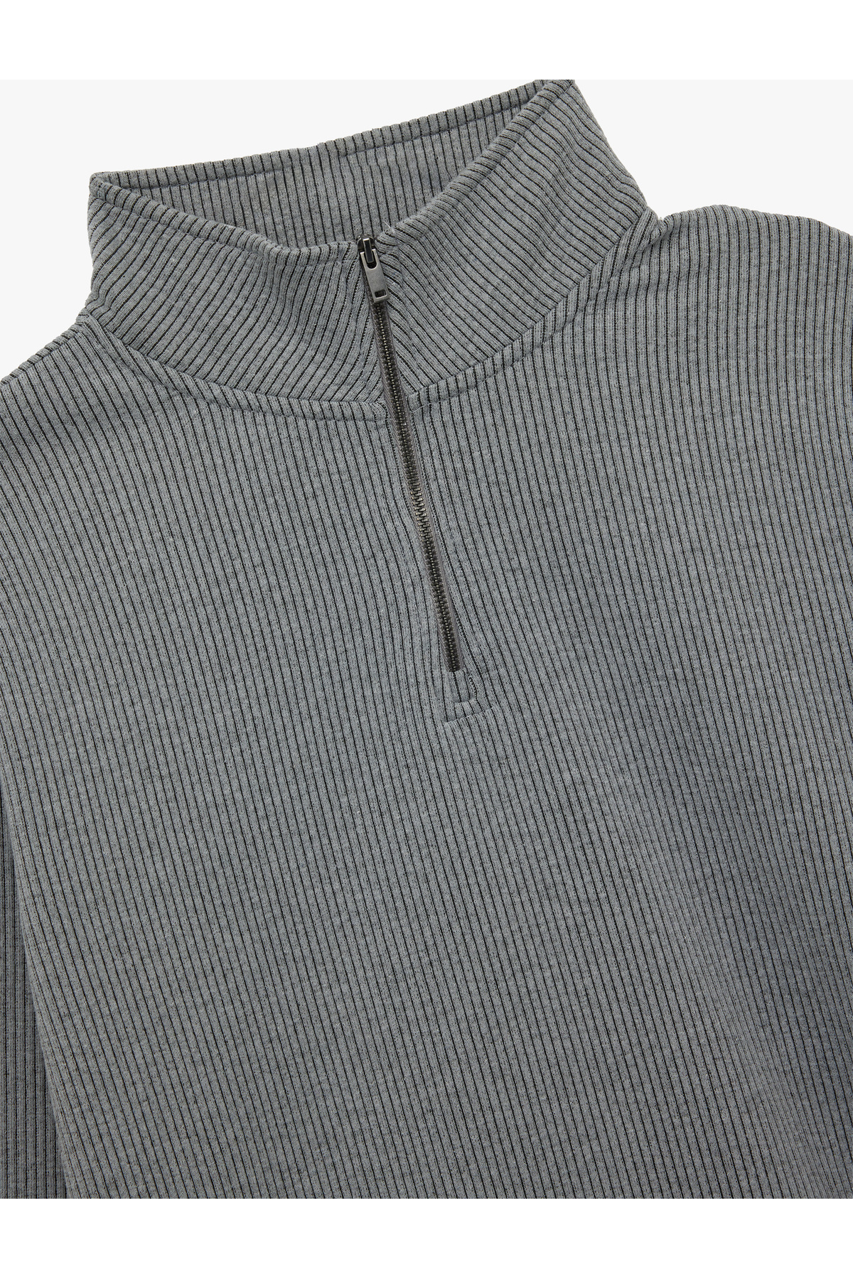 سویشرت آستین بلند بافت‌دار نیم زیپ