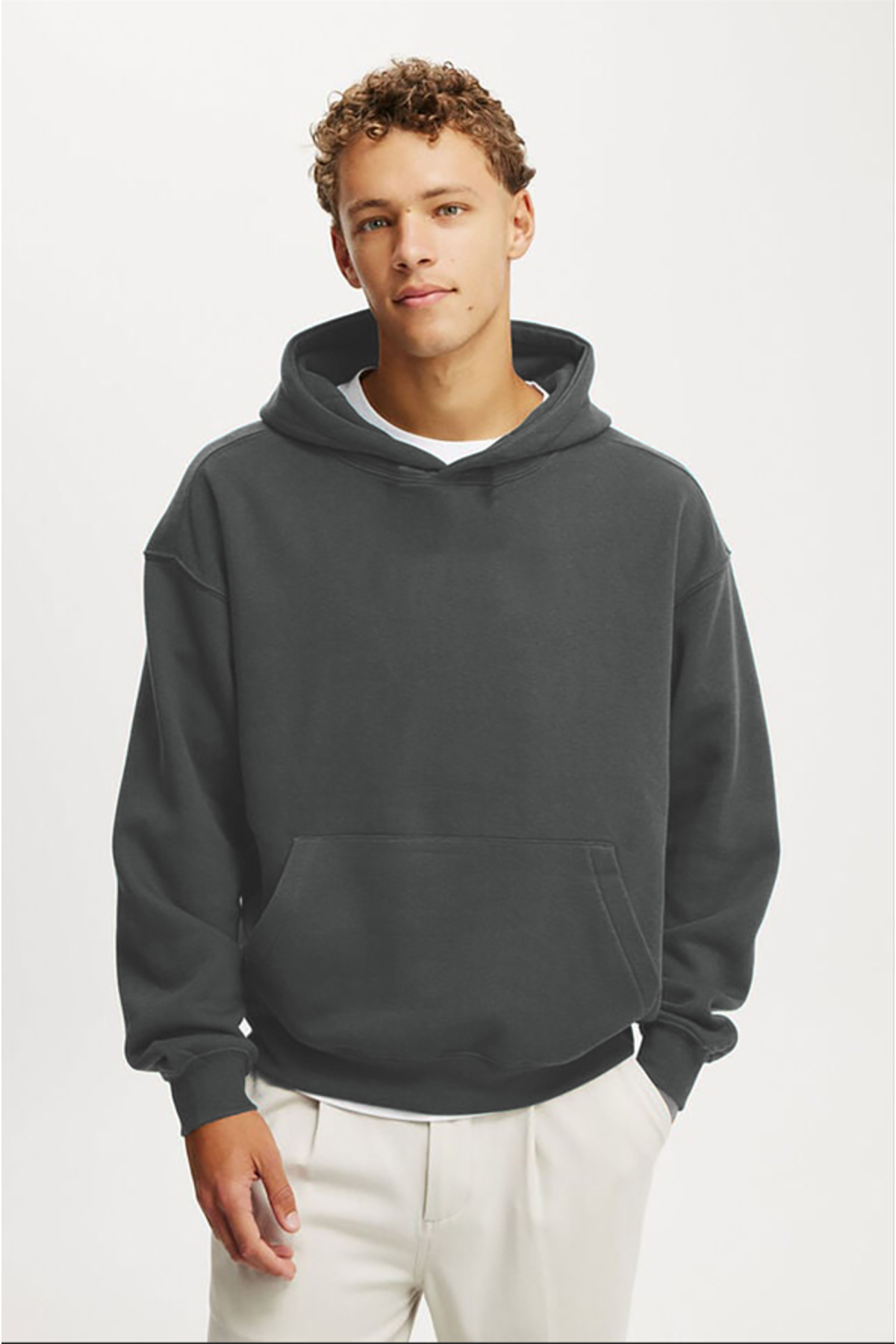 سویشرت مردانه جیبدار کانگورو خاکستری دودی E7169