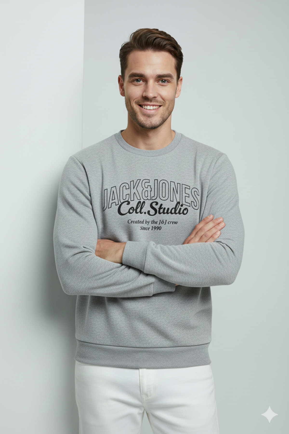 سویشرت جک اند جونز خاکستری آستین بلند پنبه – پلی استر | | نمایندگی جک اند جونز