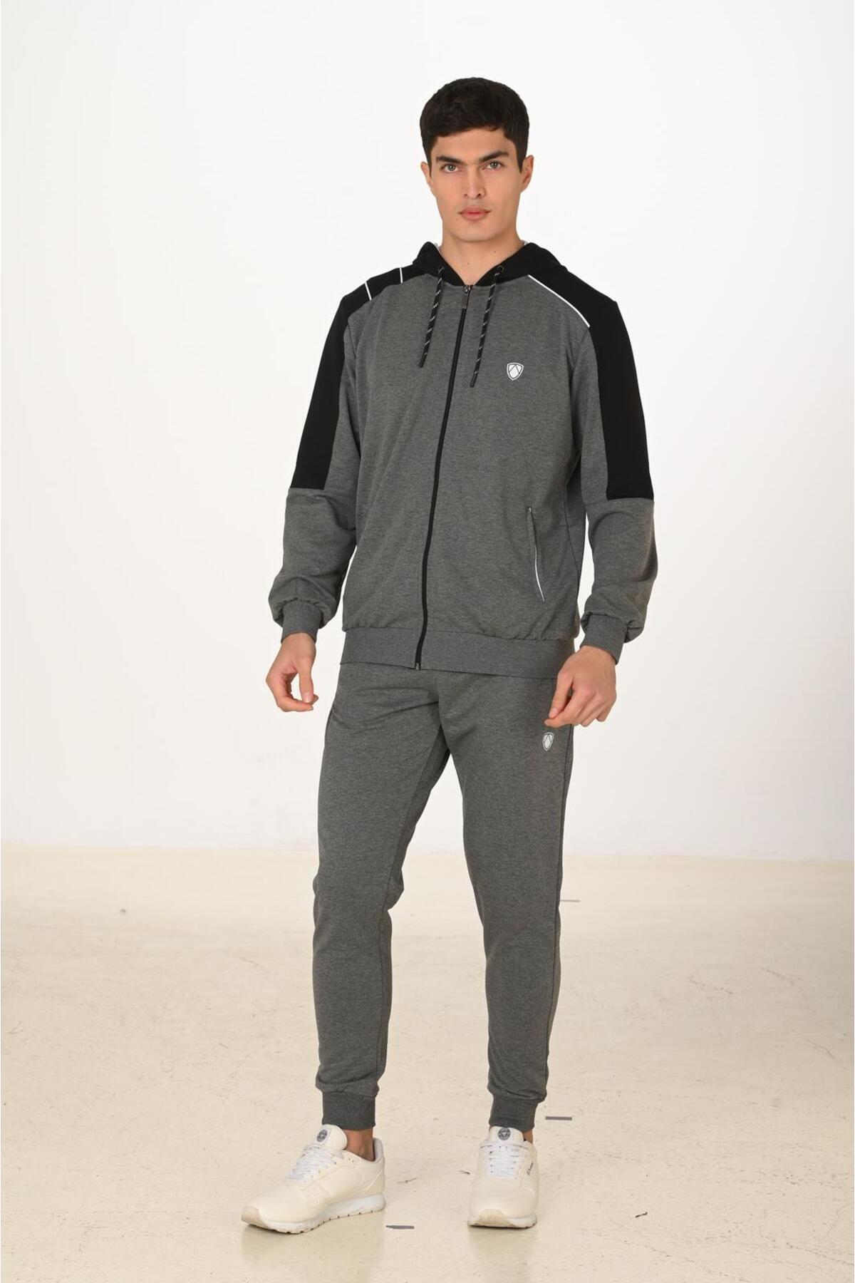 ست لباس ورزشی مردانه کلاه‌دار تمام زیپ نخی آنتراسیت M. 5282-A