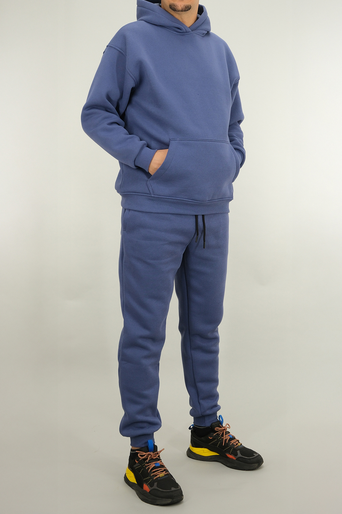 ست لباس ورزشی کلاه دار زمستانی ضخیم سه نخی مردانه مدل Indigo