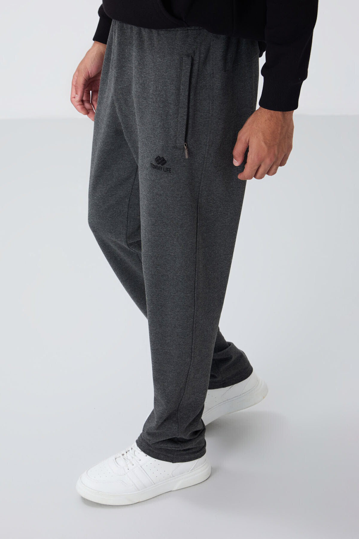 شلوار ورزشی مردانه اسلیم فیت ملانژ آنتراسیت با جیبهای زیپدار – 84669