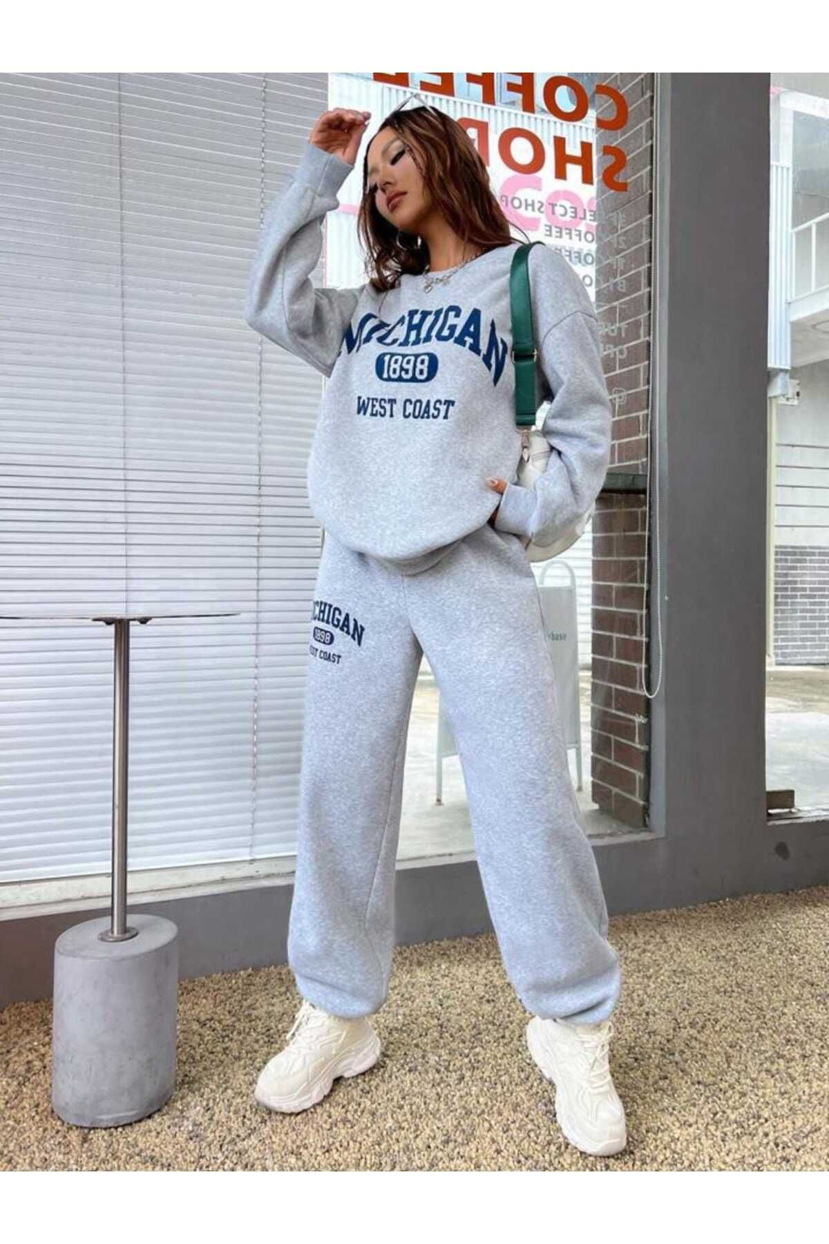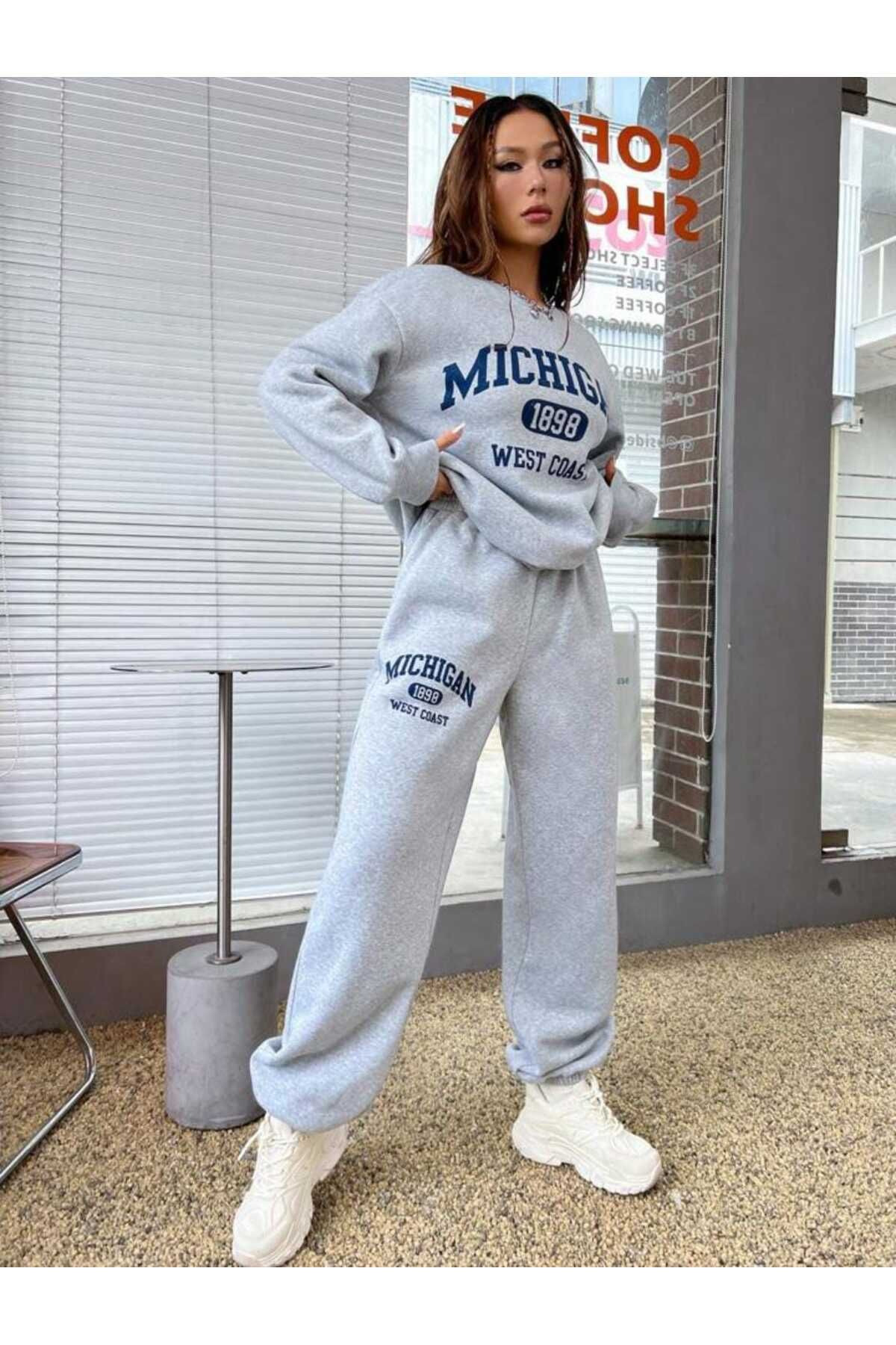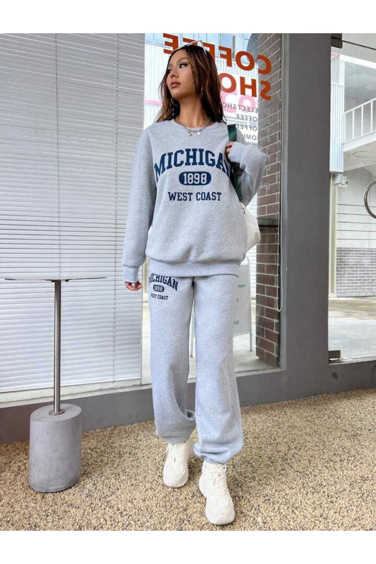 سویشرت و شلوار راحتی زمستانی میشیگان ۱۸۹۸ – یقه گرد بزرگ طرح دار خاکستری