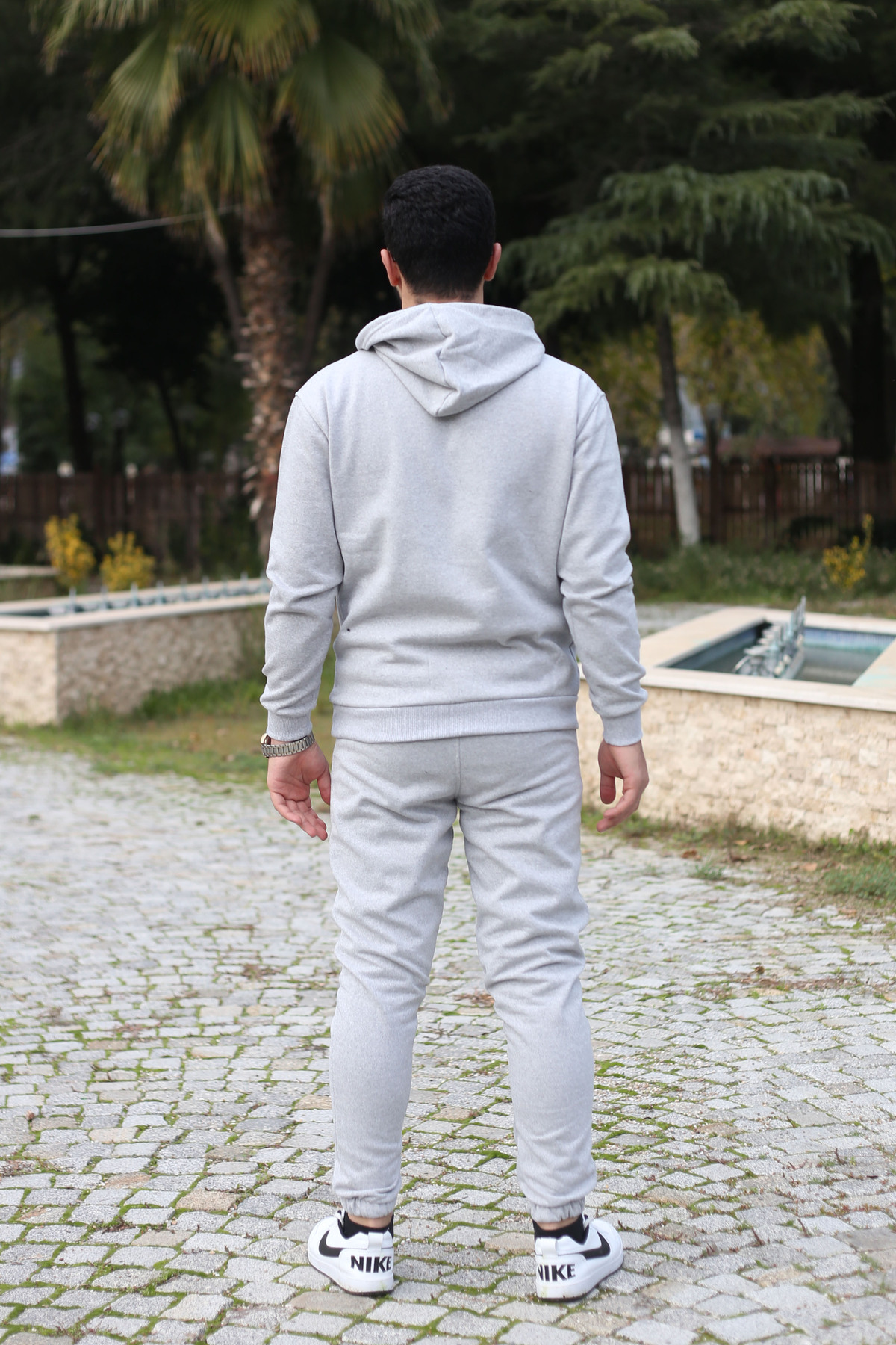 لباس ورزشی زمستانی مردانه با آستر پشمی، جیب کانگورویی، کلاه و مچ پا کشسان.
