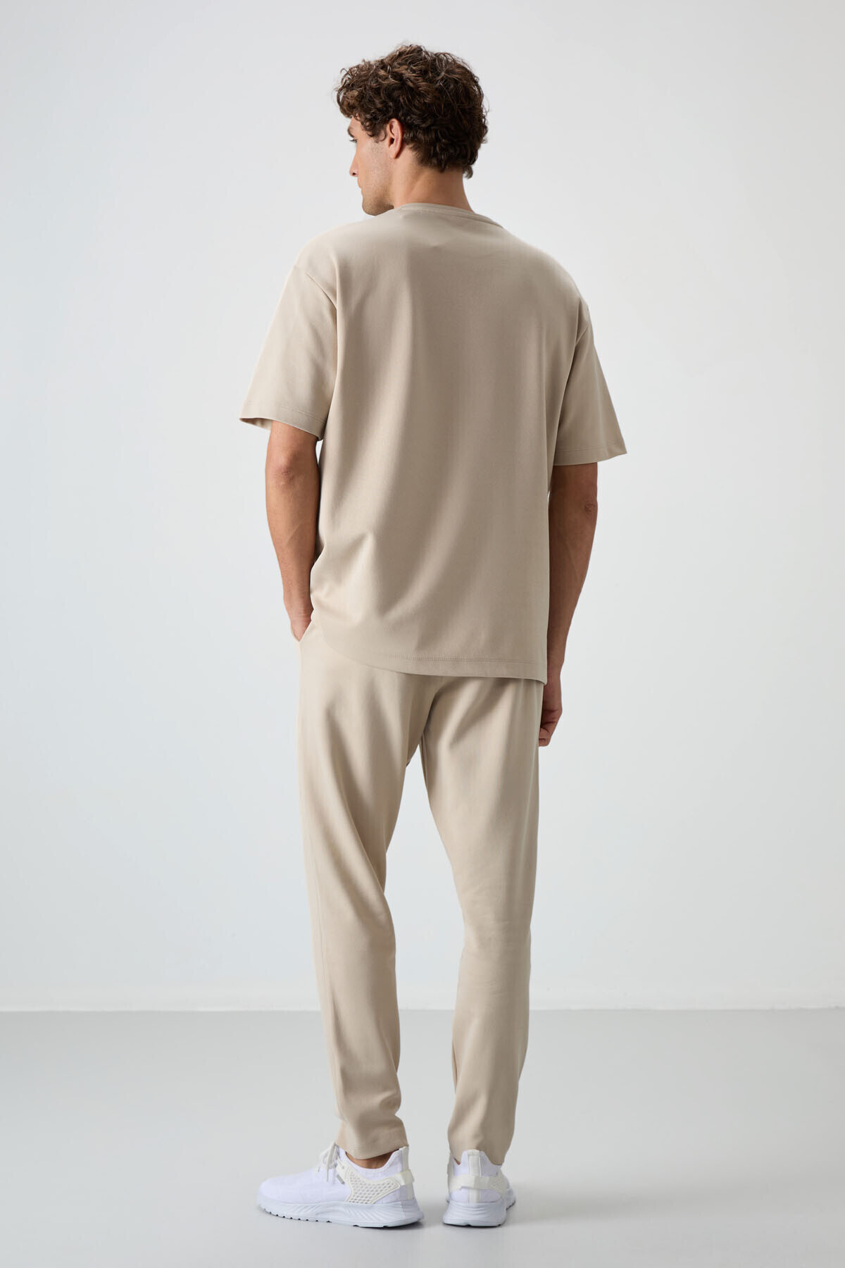 ست لباس ورزشی مردانه گلدوزی شده، ضخیم، نرم و بافتدار بژ، سایز بزرگ، پنبهای – 85252